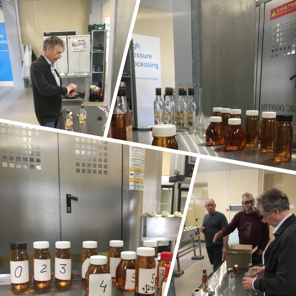 Высокое давление — это не только про срок годности мяса или рыбы. Мы давно хотели проверить, как HPP работает с крепким алкоголем. И вот — добрались. Раньше проводили эксперименты с дистиллятами и экстракцией веществ. Теперь — масштабно. Закупили коробку бренди, разлили по пластиковым бутылочкам, добавили разные компоненты (и без добавок тоже) — и обработали на нескольких режимах. Фото процесса есть, атмосфера была🔥 Часть образцов уедет в Москву, в ФНЦ — на органолептические тесты профессионалов винодельческой отрасли. Остальное исследуем сами. Цель — понять, как барообработка влияет на цвет, запах, вкус, содержание веществ, крупные молекулы и другие характеристики. Исследования по HPP для алкоголя ведутся давно. Ещё в 2000 году учёные сравнили пиво после термообработки и после HPP. Термообработка меняла цвет и увеличивала концентрацию нежелательных веществ. А HPP-пиво не отличалось от необработанного. В 2015 году китайские исследователи обрабатывали молодое красное вино давлением