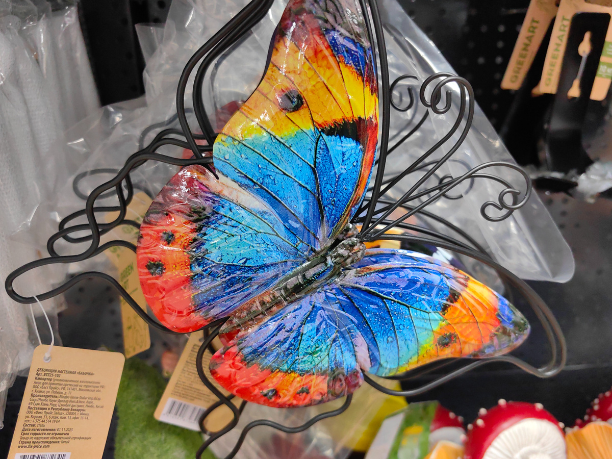 Столько всего нового привезли в Фикс Прайс, я еще удивилась, что новинка для другого, а висит рядом с садовыми товарами. Нарядная такая, на вид хорошо проработана, похожа на настоящую. Да, это бабочка, только металлическая и гораздо крупнее реальной. Для чего такая?