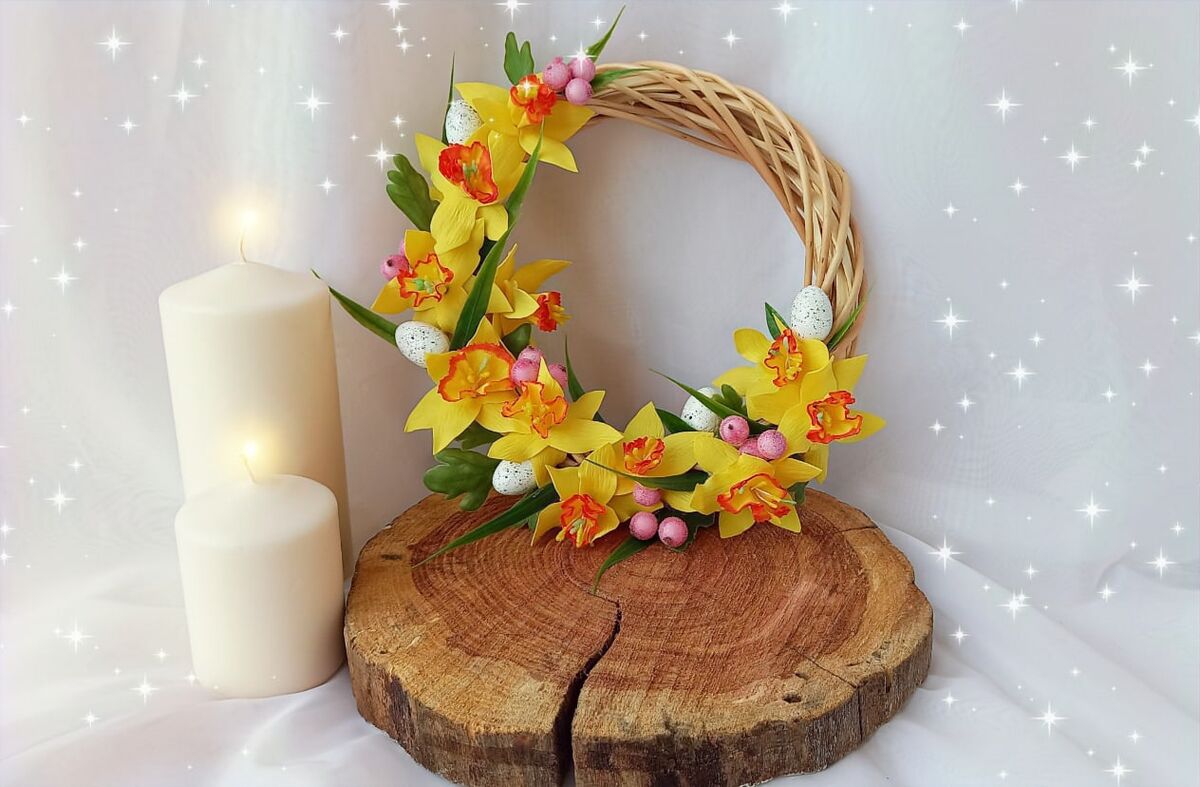 Весна — это время невероятного вдохновения и обновления. Сегодня мы создадим один из самых нежных весенних символов — нарцисс. Этот цветок из фоамирана получается очень ярким и сочным, а готовую композицию можно использовать как для украшения интерьера, так и в качестве праздничного венка к Пасхе.