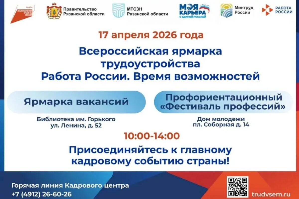 17 апреля в областной библиотеке им. Горького в рамках партийного проекта «Моя карьера с Единой Россией» более 100 ведущих компаний Рязанской области представят около 4 тысяч вакансий. Жители региона смогут лично пообщаться с представителями организаций, узнать о возможностях