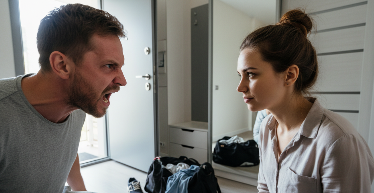 Улыбка мужа моментально исчезла. Его черты стали напряженными и резкими. Сделав несколько шагов вперед, он попытался перехватить инициативу и подавить жену привычным авторитетом.