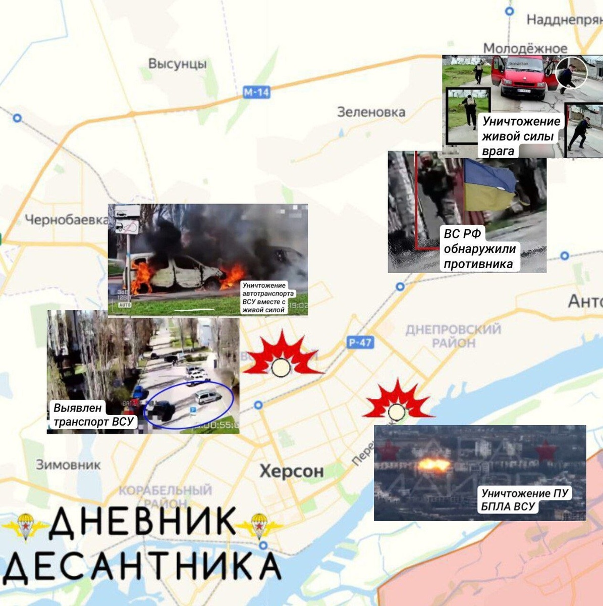 ΠΎΠ΄Π΅ ΡΠ°Π·Π²Π΅Π΄ΠΊΠΈ ΠΠ‘ Π Π€ Π²ΡΡΠ²Π»ΡΠ΅Ρ ΠΈ ΠΏΠΎΡΠ°ΠΆΠ°Π΅Ρ Π²ΡΠ°ΠΆΠ΅ΡΠΊΠΈΠ΅ ΡΠ΅Π»ΠΈ. ΠΠ°ΡΠΈ Π²ΠΎΠΉΡΠΊΠ° Π·Π°Π΄Π΅ΠΉΡΡΠ²ΡΡ Π΄ΡΠΎΠ½Ρ ΠΈ Π°Π²ΠΈΠ°ΡΠΈΡ. ΠΡΠΎΡΠΈΠ²Π½ΠΈΠΊ ΠΏΡΠΎΠ΄ΠΎΠ»ΠΆΠ°Π΅Ρ ΡΠ²ΠΎΡ Π±ΠΎΡΡΠ±Ρ Ρ Π³ΡΠ°ΠΆΠ΄Π°Π½ΡΠΊΠΈΠΌΠΈ, ΠΎΠ±ΡΡΡΠ΅Π»ΠΈΠ²Π°Ρ Π»Π΅Π²ΠΎΠ±Π΅ΡΠ΅ΠΆΡΠ΅. π₯ Π Π₯Π΅ΡΡΠΎΠ½ΡΠΊΠΎΠΉ ΠΎΠ±Π»Π°ΡΡΠΈ ΠΠ‘ Π Π€ ΡΠ½ΠΈΡΡΠΎΠΆΠΈΠ»ΠΈ ΠΊΡΠΏΠΎΠ»ΡΠ½ΡΠΉ Π ΠΠ. (Π²ΠΈΠ΄Π΅ΠΎ 1) π₯ ΠΡΡΠΈΠ»Π»Π΅ΡΠΈΡΡΡ ΠΡΠ "ΠΠ½Π΅ΠΏΡ" ΡΠ½ΠΈΡΡΠΎΠΆΠΈΠ»ΠΈ ΠΏΡΠ½ΠΊΡ Π²ΡΠ΅ΠΌΠ΅Π½Π½ΠΎΠΉ Π΄ΠΈΡΠ»ΠΎΠΊΠ°ΡΠΈΠΈ ΠΏΡΠΎΡΠΈΠ²Π½ΠΈΠΊΠ° Π½Π° Π₯Π΅ΡΡΠΎΠ½ΡΠΊΠΎΠΌ Π½Π°ΠΏΡΠ°Π²Π»Π΅Π½ΠΈΠΈ. (Π²ΠΈΠ΄Π΅ΠΎ 2) Π Π²ΠΎΡΡΠΎΡΠ½ΠΎΠΉ ΡΠ°ΡΡΠΈ Π₯Π΅ΡΡΠΎΠ½Π° ΠΏΡΠ½ΠΊΡ ΡΠΏΡΠ°Π²Π»Π΅Π½ΠΈΡ ΠΠΠΠ ΠΠ‘Π£ ΡΠ½ΠΈΡΡΠΎΠΆΠΈΠ»Π° Π½Π°ΡΠ° Π°Π²ΠΈΠ°ΡΠΈΡ Π€ΠΠΠ°ΠΌΠΈ. ΠΡΠ½ΠΊΡ ΡΠΏΡΠ°Π²Π»Π΅Π½ΠΈΡ Π±ΡΠ» ΠΎΠ±Π½Π°ΡΡΠΆΠ΅Π½ Π² Π·Π΄Π°Π½ΠΈΠΈ ΠΌΠ΅Π΄ΠΊΠΎΠ»Π»Π΅Π΄ΠΆΠ°. ΠΡΠΎΠΌΠ΅ ΡΠΎΠ³ΠΎ, Π² Π₯Π΅ΡΡΠΎΠ½Π΅ ΠΏΡΠΎΡΠΈΠ²Π½ΠΈΠΊ ΠΈΡΠΏΠΎΠ»ΡΠ·ΡΠ΅Ρ Π°Π²ΡΠΎΠΌΠΎΠ±ΠΈΠ»ΡΠ½ΡΠΉ ΡΡΠ°Π½ΡΠΏΠΎΡΡ, ΠΊΠΎΡΠΎΡΡΠΉ Π² ΡΠ²ΠΎΡ ΠΎΡΠ΅ΡΠ΅Π΄Ρ ΡΠ½ΠΈΡΡΠΎΠΆΠ°ΡΡ Π½Π°ΡΠΈ Π΄ΡΠΎΠ½ΠΎΠ²ΠΎΠ΄Ρ ΠΈΡΠΏΠΎΠ»ΡΠ·ΡΡ Π΄ΡΠΎΠ½Ρ Π½Π° ΠΎΠΏΡΠΎΠ²ΠΎΠ»ΠΎΠΊΠ½Π΅. Π’Π°ΠΊΠΆΠ΅ Π² Π₯Π΅ΡΡΠΎΠ½Π΅ Π½Π° ΡΠ΅ΡΡΠΈΡΠΎΡΠΈΠΈ ΡΠ°ΡΡΠ½ΠΎΠ³ΠΎ ΡΠ΅ΠΊΡΠΎΡΠ° 18 ΠΠ ΠΡΠ "ΠΠ½Π΅ΠΏΡ" ΠΎΠ±Π½Π°ΡΡΠΆΠΈΠ»ΠΈ ΠΈ ΡΠ½ΠΈΡΡΠΎΠΆΠΈΠ»ΠΈ ΠΆΠΈΠ²ΡΡ ΡΠΈΠ»Ρ Π²ΡΠ°Π³Π°. β«οΈ ΠΠ½Π΅Π²Π½ΠΈΠΊ ΠΠ΅ΡΠ°Π½ΡΠ½ΠΈΠΊΠ° π² ΠΠ½Π΅Π²Π½ΠΈΠΊ ΠΠ΅ΡΠ°Π½ΡΠ½ΠΈΠΊΠ° Π² ΠΠΠ₯