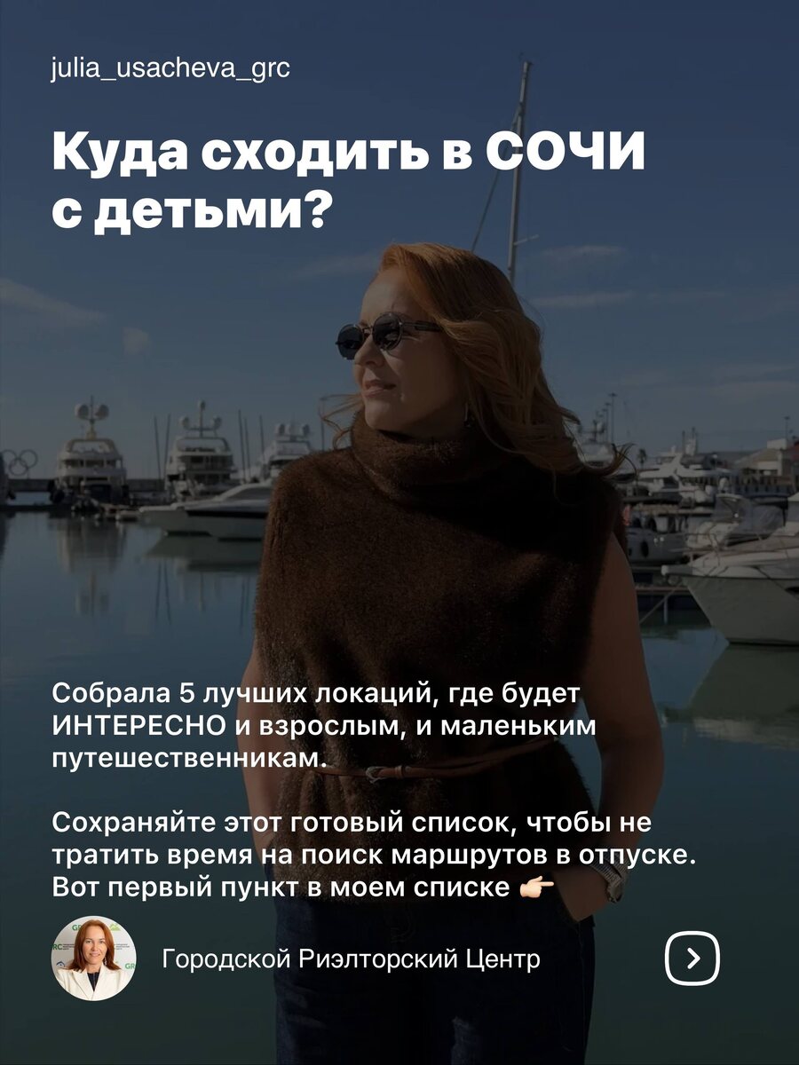 ⠀ Если вы планируете поездку в Сочи с детьми, вот 5 мест, где будет интересно и взрослым, и маленьким путешественникам 👇 ⠀ 🌴 Сочи Парк Настоящий русский «Диснейленд»: аттракционы, шоу, тематические зоны и куча эмоций. Подходит для детей разного возраста — от спокойных каруселей до экстремальных горок. ⠀ 🏟 Олимпийский парк Огромная территория для прогулок: можно кататься на велосипедах, самокатах, смотреть поющие фонтаны и просто бегать без ограничений. Отлично подходит для активного отдыха с детьми. ⠀ 🏔 Красная Поляна Летом — канатки, горные прогулки и свежий воздух, зимой — снег и развлечения. Есть детские зоны, площадки и даже семейные маршруты. ⠀ 🌊 Океанариум Sochi Discovery World Aquarium Один из крупнейших в России: тоннели с акулами, экзотические рыбы и возможность буквально «погрузиться» в подводный мир. ⠀ 🌿 Парк Ривьера Отличный вариант для спокойного отдыха: аттракционы, контактный зоопарк, зелёные аллеи и мороженое на каждом шагу. ⠀ Совет: планируйте посещения на утро и