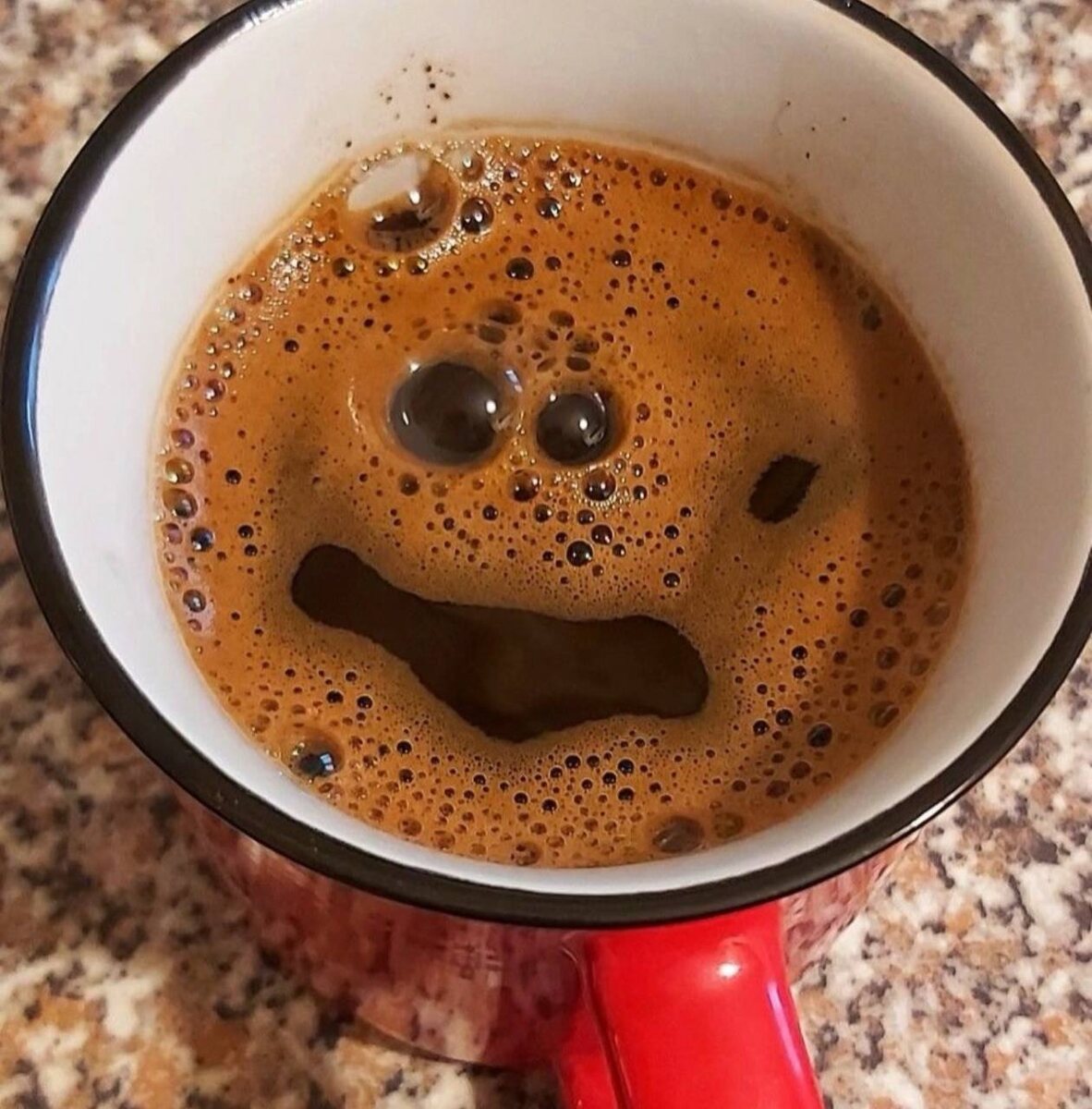 Это явление называется парейдолия — именно поэтому мы иногда видим лица в облаках, тостах или даже в пенке ☕️ В мозге есть особая область — веретенообразная зона, которая отвечает за распознавание лиц. Поскольку это было важно для выживания и социального взаимодействия, мозг эволюционировал так, чтобы делать это быстро — иногда даже слишком быстро. Даже две точки и изогнутая линия могут мгновенно создать ощущение, что перед вами лицо. Вот почему случайные пузырьки, тени и узоры пены в кофе могут внезапно выглядеть как удивленные, счастливые или сонные выражения. Ваш мозг просто делает то, для чего он эволюционировал — ищет знакомые образы в окружающем мире.