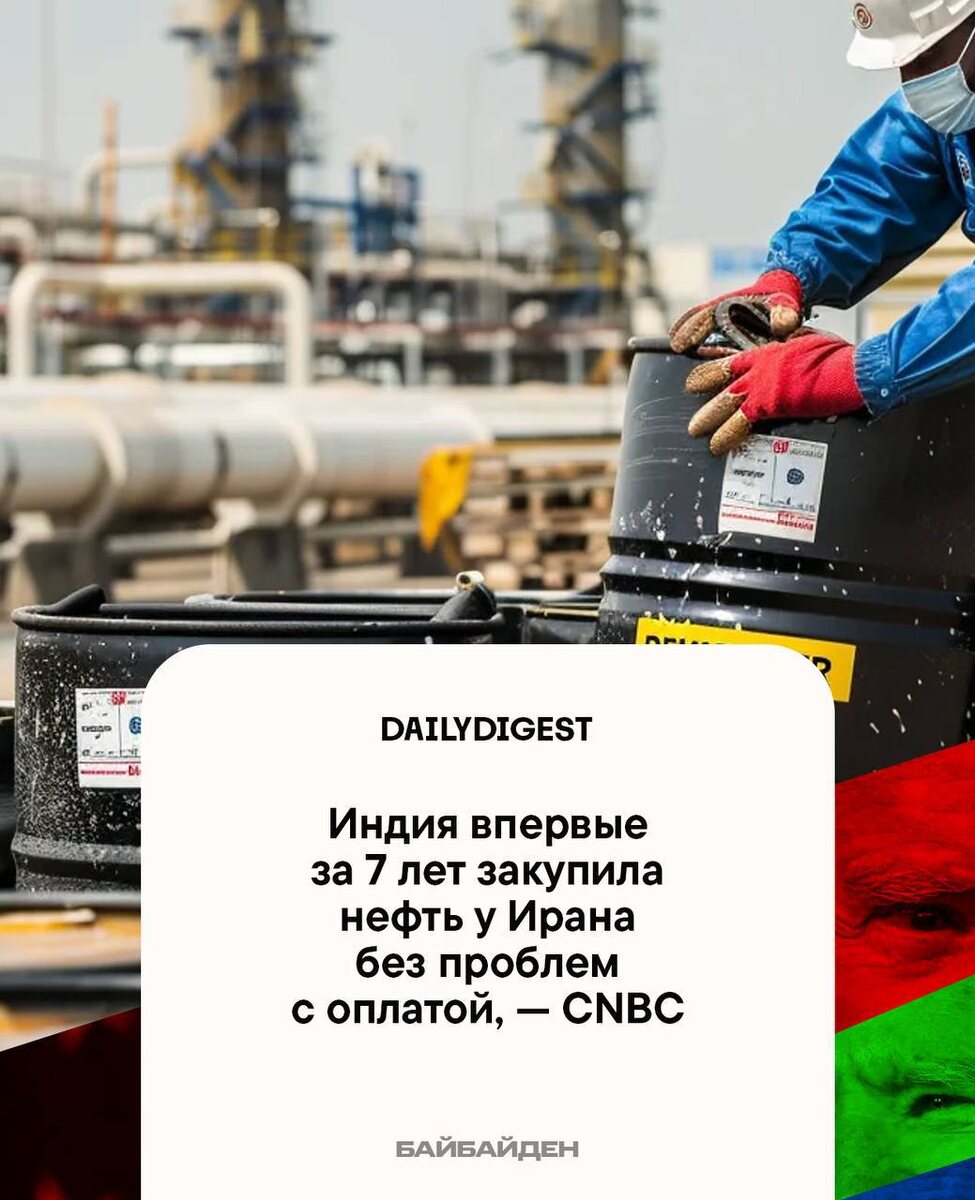 : 🔹Индия впервые за семь лет закупила нефть у Ирана без проблем с оплатой — CNBC. 🔹Глава Генштаба армии Ирана в ответ на угрозы Дональда Трампа пообещал отправить солдат США «в глубины ада». 🔹Машина врезалась в толпу во время празднования лаосского Нового года в американском штате Луизиана, пострадали 15 человек, сообщило агентство Reuters. 🔹Второй пилот сбитого в Иране американского истребителя находится в безопасности, заявил Трамп. 🔹Уиткофф влияет на процесс выбора посла США в РФ, сообщила The Daily Mail со ссылкой на источники. 👍«БайБайден» в МАХ