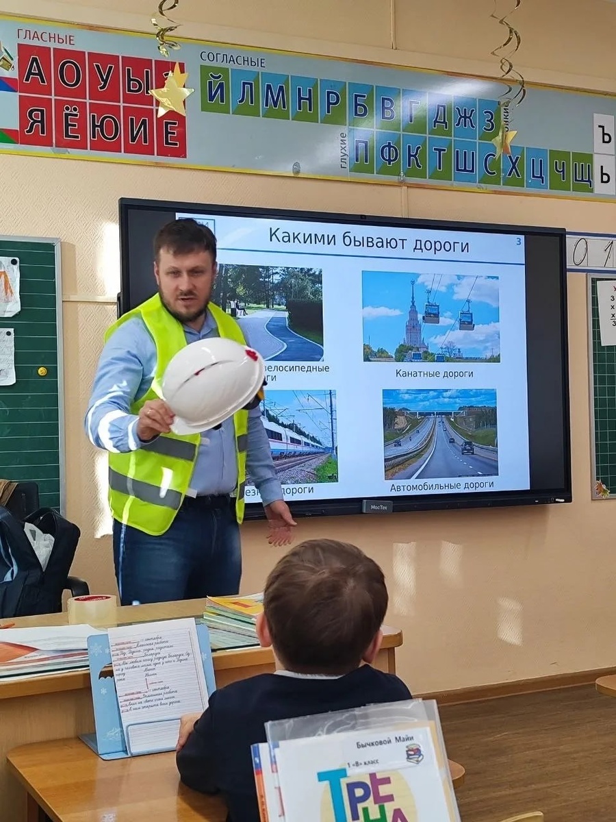 Родительский лекторий в декаду наук в школе 1358 🏗 У наших первоклассников прошла удивительная встреча с человеком, который любит свое дело✨— Михаилом Юрьевичем Горским, папой Ксюши. Ребята на время превратились в настоящих инженеров-строителей и узнали всё о том, как устроены дороги и мосты нашей великой страны 🇷🇺 Что нового открыли для себя юные исследователи? 🔹 Секреты дорог: Из чего делают современное покрытие и какие бывают виды дорог. 🔹 Искусство строить мосты: Как удержать огромную конструкцию над водой. 🔹 Рекорды России: • Крымский мост — настоящий гигант! Его протяженность 19 км, и это самый длинный мост в России. • Санкт-Петербург — город мостов. Ребята удивились, узнав, что их там более 800! • Синий мост в Питере — уникальный объект, его ширина составляет целых 97 метров. • Мост во Владивостоке — один из самых высоких в мире (3-е место!). Его высота сравнима с тремя футбольными полями, поставленными друг на друга! ⚽️⚽️⚽️ 🔥 Встреча получилась невероятно громкой, яркой