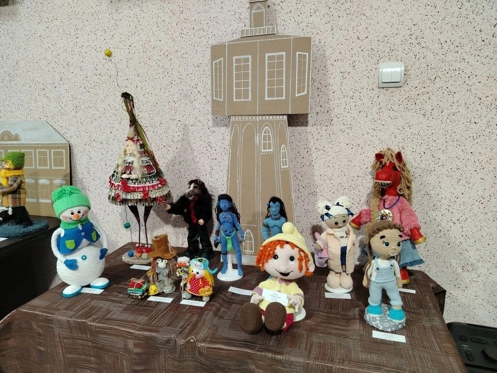 Куклы, выполненные в разных техниках, украсили витрины музейного зала. Есть здесь и работы по мотивам известных произведений, и куклы в национальных костюмах, и необычайные животные, созданные из шерсти, а также персонажи книг, выполненные из текстиля, полимерной глины, дерева. Есть даже насекомые - маленькие музыканты из джазового оркестра «Мотыльки». Не обошлось и без символа года – Красного Коня. Как признались авторы, многие из них разговаривают со