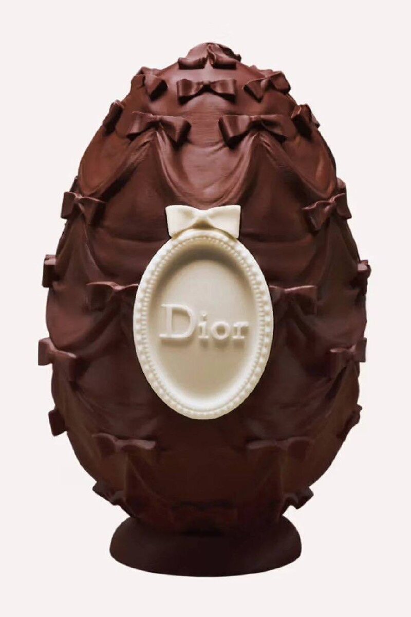 В преддверии праздника два дома: Dior и Louis Vuitton снова сделали то, что умеют лучше всего: превращают символы в объекты желания. У Dior центр композиции шоколадное яйцо, созданное Янник Аллено, обладателем 18 звёзд Michelin. Почти архитектура: тёмный и белый шоколад складываются в силуэт медальона Кристиан Диор с его идеальной симметрией и тем самым бантом. Даже в таком хрупком материале чувствуется дисциплина формы и уважение к коду дома. Линия Dior Maison продолжает диалог: керамика Trompe-l’œil играет с восприятием, стирая грань между реальностью и иллюзией и это уже не просто декор, а высказывание. Louis Vuitton отвечает своей гастрономической иронией. Главный объект – Chocolate Egg Bag, шоколадная версия культовой сумки, переосмысленной Николя Жескьер. Корпус из тёмного шоколада, детали из молочного, фирменная монограмма, внутри мягкая орехово-кремовая начинка. Дополняют коллекцию мини-версия сумки и шоколадные цыплята с неожиданными вкусами – от мёда до гречки. Автор этой и