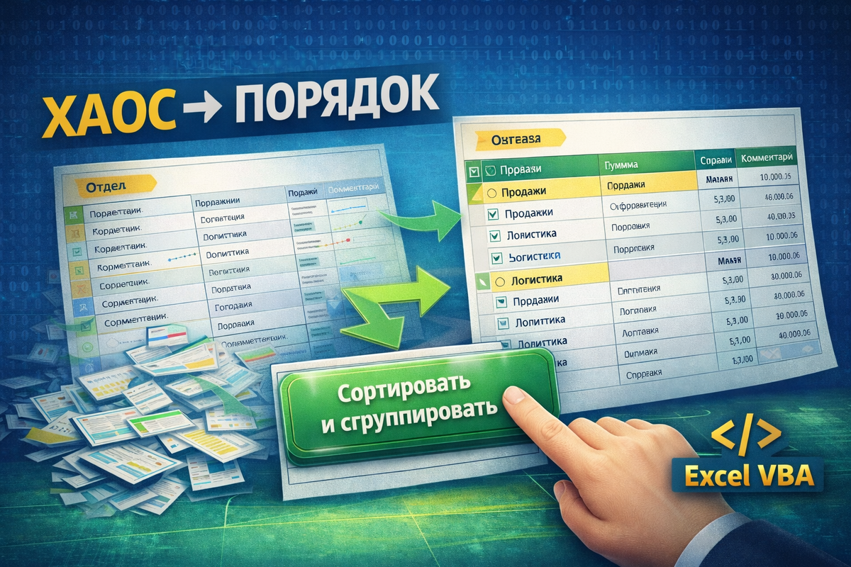 Отсортируй и сгруппируй данные в Excel одной кнопкой — VBA, который превращает хаос в рабочую таблицу. Как автоматически сортировать и группировать данные в Excel с помощью VBA. Готовый макрос, разбор, ошибки, сценарии применения и настройка под реальную работу.