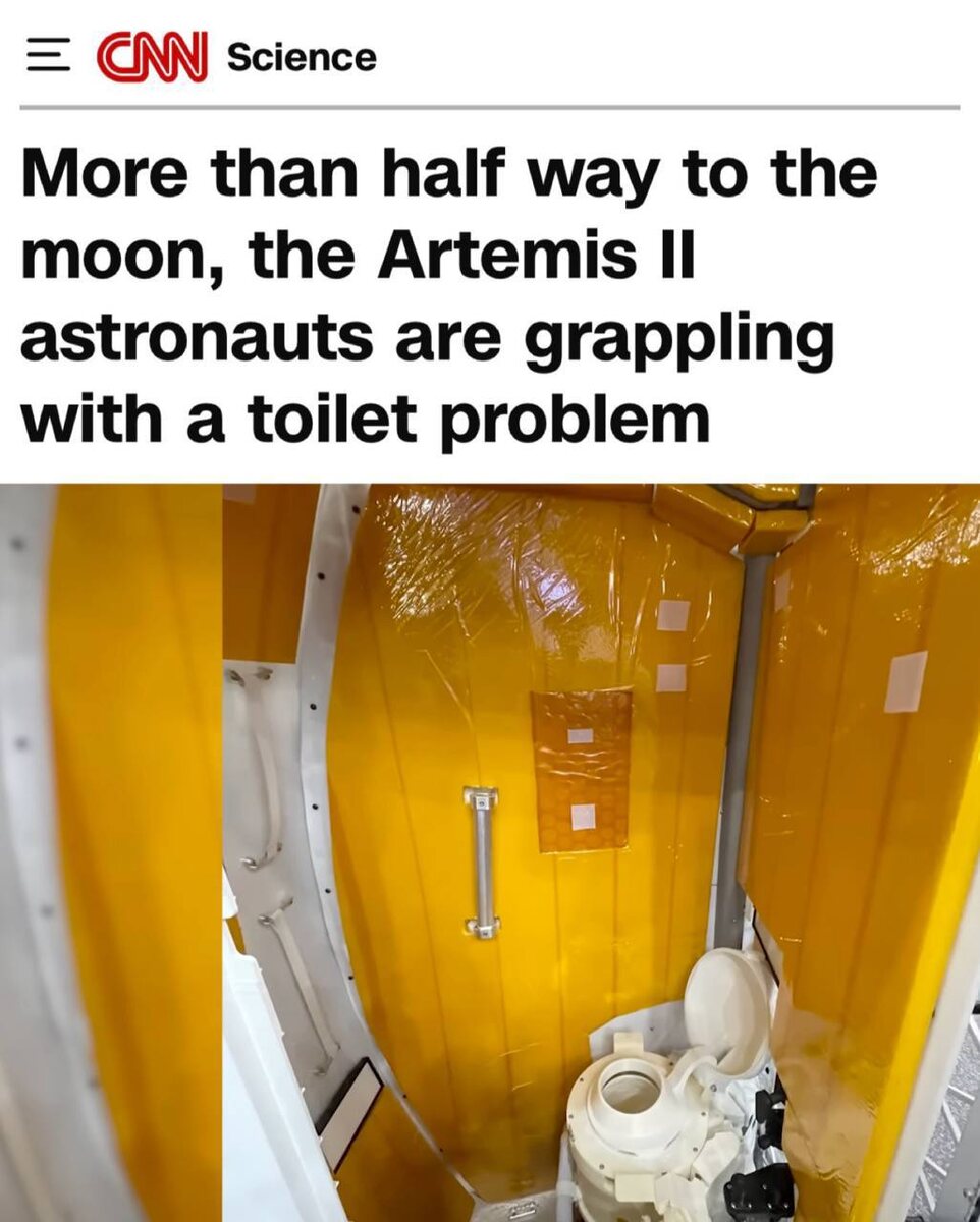 На борту корабля Orion новые «космические открытия». Сначала сломалась система утилизации отходов, затем пропала связь с экипажем, а теперь — загадочный запах гари из туалета. Похоже, главный риск миссии — не космос, а санузел. 🚲 Подпишись на Телега Online