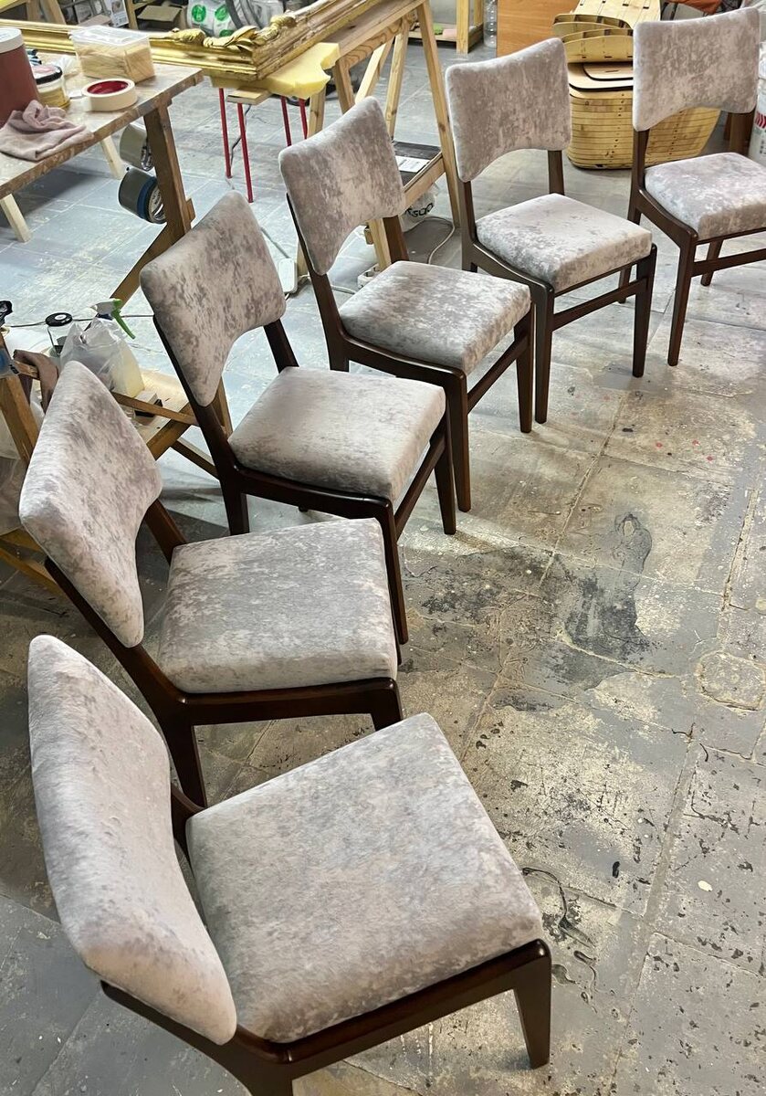 Сложно сказать о производителе, но думаю ГДР. Добротно сделанные, но уже всё таки послужившие долго стулья. Разобрал, зачистил, склеил, затонировал и покрыл лаком. Так же заменили наполнение сиденья и спинки. Перетяжка новой тканью. Реставрация под заказ. Нет в наличии