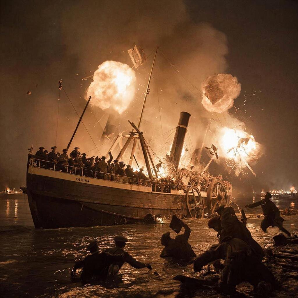 Паника охватила выживших. Шлюпки и спасательные средства были уничтожены взрывом. Люди хватались за обломки и прыгали в ледяную воду, не осознавая, что берег находится на расстоянии нескольких миль. Многие из них, ослабленные долгим пленом, не могли плыть и тонули на глазах у товарищей.