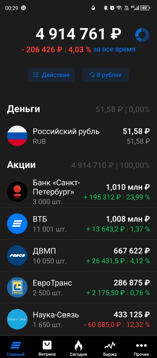 Собственно, почему так падаем то? Ниже 1,3 рублей уже. У меня с прошлых покупок оставалось на счете 136 рублей, Кармани стоило 138 рублей за лот, я выставляла заявку на удачу на один лот (чего деньгам то болтаться на счете?) и она сработала во вторник, а потом в пятницу вышли финрезультаты за 2025й и полетели.