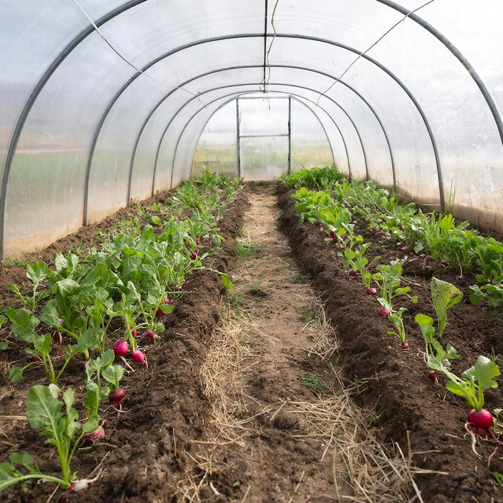 4. Укрытие. Обязательно накройте посевы нетканым материалом (спанбонд, агроволокно) прямо по земле или пленкой на дугах. Это создаст парниковый эффект: почва прогреется быстрее, всходы появятся дружнее, а главное — вы защитите нежные ростки от возвратных заморозков (-3...-5 °C им будут нипочём) и пересыхания (весной в закрытой теплице может быть и 30 градусов).