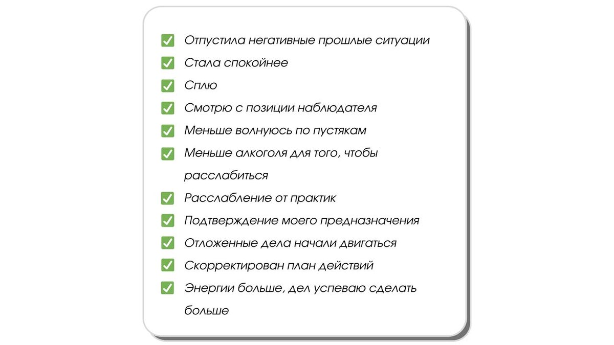 На скрине — результаты участницы программы Зои. Она пришла с внутренним настроем: «хуже уже точно не будет». До этого — множество техник, работа со специалистами… но на старте всё ещё оставались: проблемы в бизнесе, тревожность, апатия и полное отсутствие сил. И как она сама сказала: «Если честно, практики даже не хотелось делать — было полное безразличие ко всему». Но, несмотря на это состояние, она всё же сделала первый шаг — начала выполнять практики первого дня. Первая обратная связь была с долей скепсиса. И это нормально. Ум часто сомневается там, где начинается настоящее изменение. Но по мере движения по программе она начала раскрываться — мягко, постепенно, как цветок, который долго ждал своего времени. И уже через 20 дней практики на онлайн-встрече передо мной была совсем другая женщина — улыбающаяся, живая, с искрой в глазах. Её результаты вы видите на скрине. И важно: они не абстрактные, не «про ощущения». Они проявились в жизни — в действиях, решениях, состоянии, в конкретн