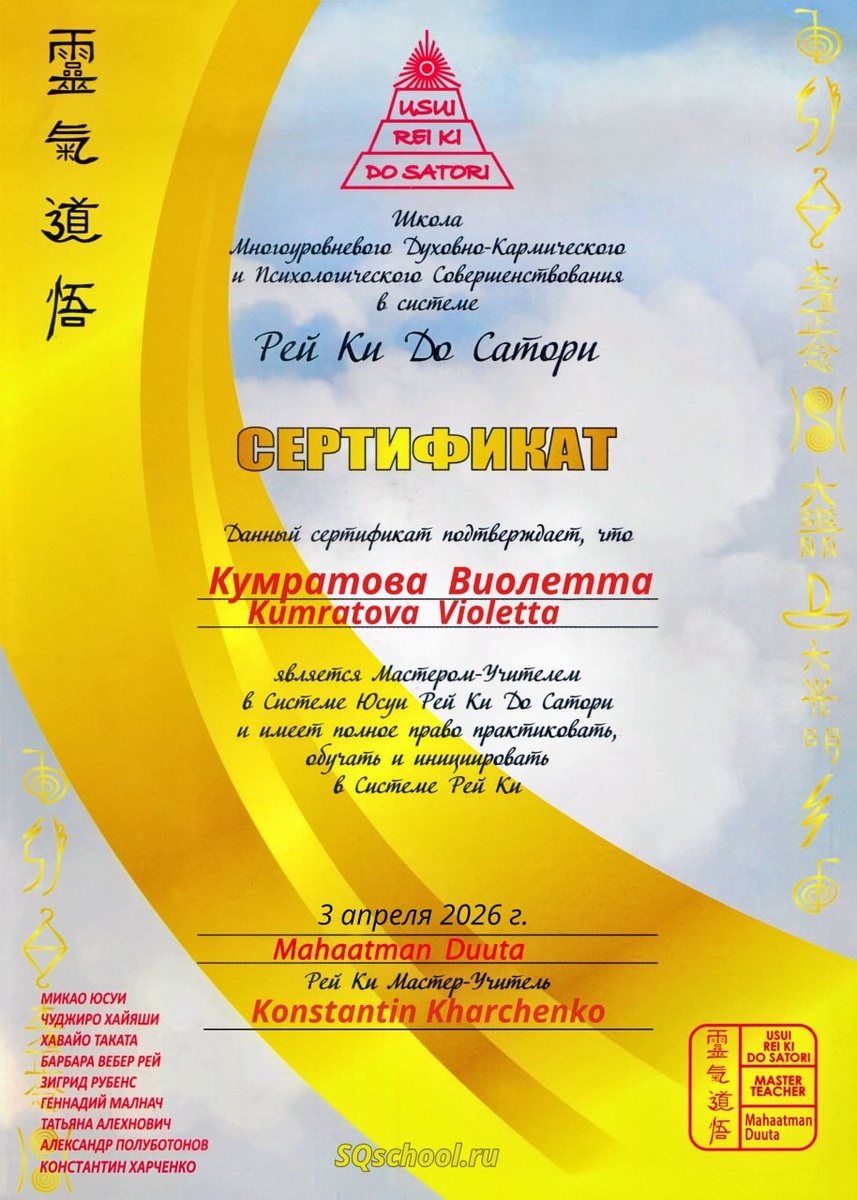 Поздравляем нового МАСТЕРА - УЧИТЕЛЯ в нашей Школе "Рэйки До Сатори"! Виолетта Кумратова