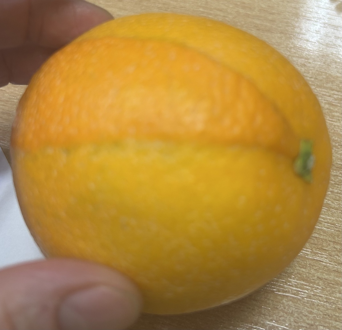 На кожуре апельсина обнаружил сегмент другого качества (толще) и цвета (оранжевее).