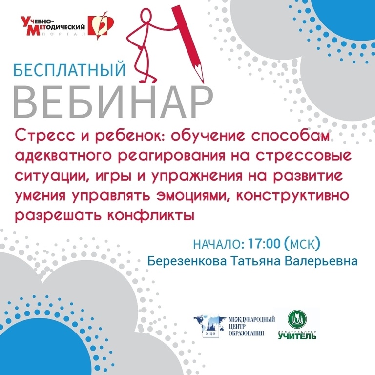 Вебинар «Стресс и ребенок: обучение способам адекватного реагирования на стрессовые ситуации, игры и упражнения на развитие умения