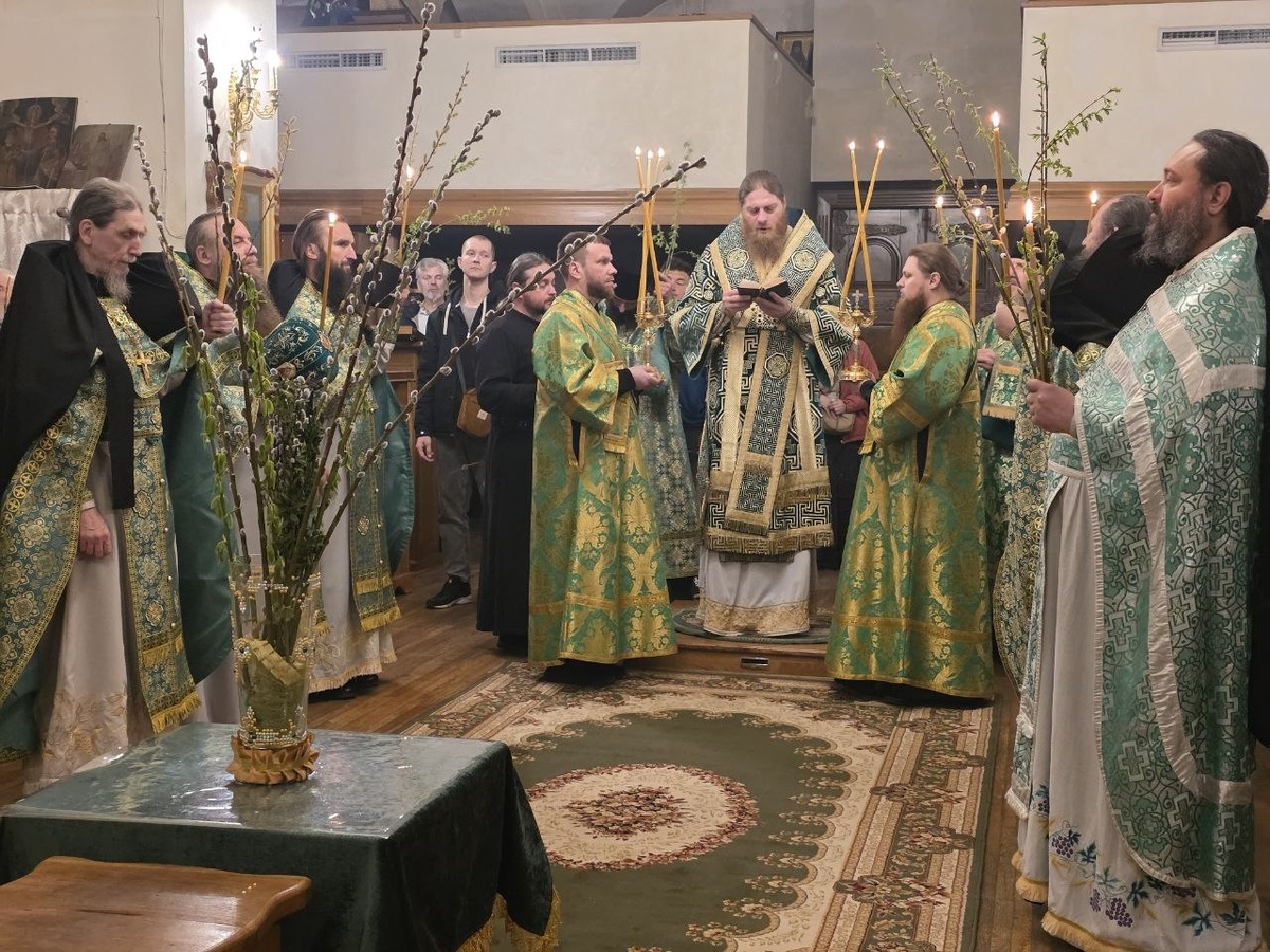 В праздник Входа Господня в Иерусалим Божественную литургию и освящение вербы возглавил наместник обители архиепископ Амвросий