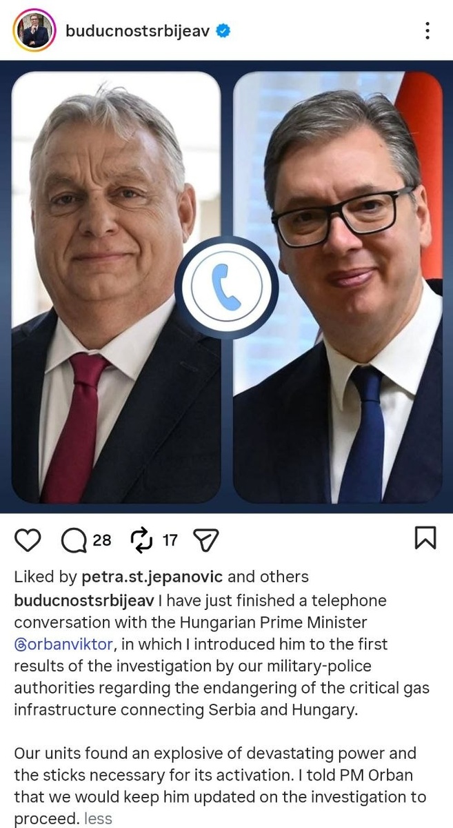 Prez Vucic calls PM Orban after army 'prevents large-scale incident' 'Had action succeeded, Hungary and northern Serbia would be left WITHOUT GAS'
