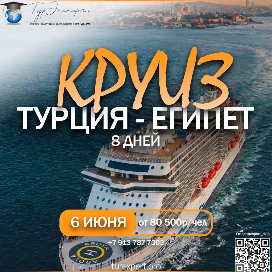 ? ОТПРАВИТЬСЯ В КРУИЗ НА НОВОМ ЛАЙНЕРЕ AROYA 🌊 Маршрут круиза охватывает лучшие порты: Стамбул, Мармарис, Бодрум, Каш и Александрию — вы увидите Турцию и Египет без лишней спешки. А на борту вас ожидает система «ВСЕ ВКЛЮЧЕНО»: 🟠современные каюты 🟠стандартное разнообразное меню и халяль в ресторанах 🟠бассейны 🟠аквапарк 🟠детские клубы 🟠спа-центр 🟠и многое другое Вы точно не заскучаете, ведь на борту есть масса развлечений: мини-гольф, верёвочный парк, вечерние шоу, Wi-Fi, круглосуточная поддержка — никаких забот, одно удовольствие! 📆 Старт: 6 июня 2026, Стамбул 📸 Продолжительность: 8 дней 💵 Стоимость: от 80.500 за человека 📱Напишитем мне — помогу подобрать каюту и расскажу все подробности