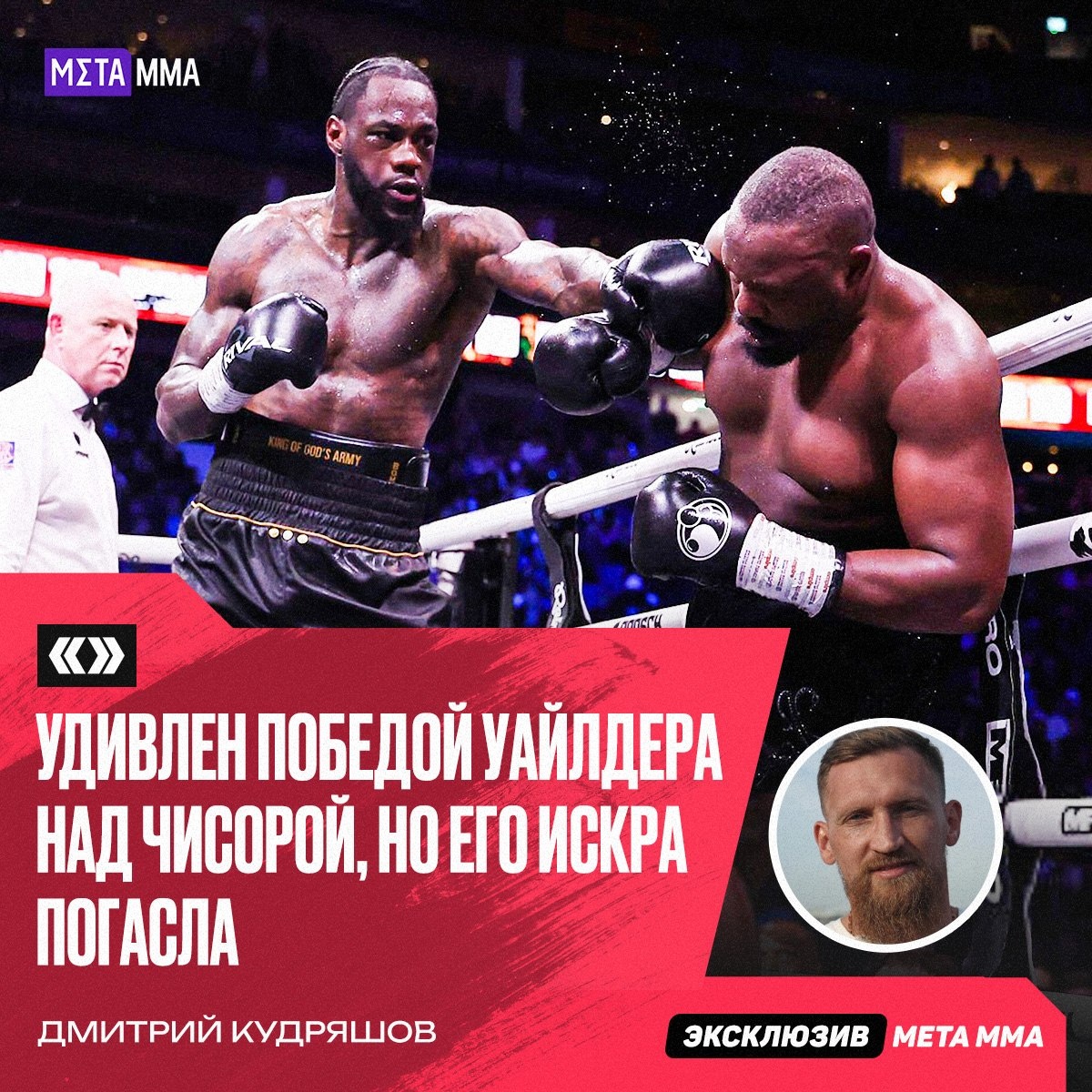 Дмитрий Кудряшов прокомментировал победу Деонтея Уайлдера над Дереком Чисорой и оценил его нынешний уровень. «Между Уайлдером и Чисорой получился вязкий бой, но, честно, удивлен результатом. Почему-то ставил на Чисору, хотя с детства за Уайлдера и ждал его фирменную колотушку справа. Да, нокдауны были, но это не то, к чему мы привыкли в исполнении Уайлдера. Кажется, искра погасла, и бомбы, которые летели непонятно откуда и по какой траектории на голову того же Бермейна Стиверна, мы уже не увидим. А делать из Уайлдера техничного боксера – это утопия. Бой Уайлдера и Усика – интересная вывеска года три-пять назад. Сейчас совсем неинтересно, но я бы все равно посмотрел. Панчер всегда имеет шанс, но не в этом бою», – сказал Кудряшов в интервью MMA.Metaratings.ru. ❓Согласны с такой оценкой Уайлдера? ❤️ — Да, согласен 🤷♂️ — Чушь 👊 Подпишись на Meta MMA | Meta MMA в MAX | Наш канал в ВК