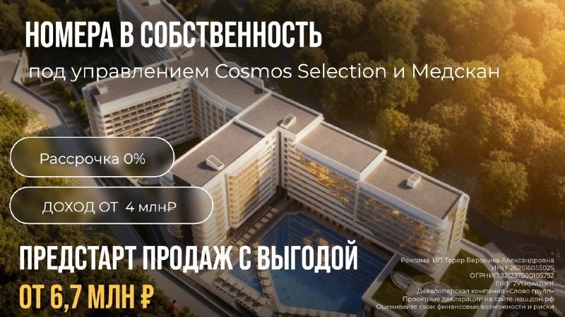 ? На Черноморском побережье начали стройку курортного комплекса Cosmos Selection 5* с крутым медицинским центром от Медскан. Это не просто отель — это ультра олл инклюзив и оздоровление с пляжем, дендропарком и даже боулингом. Инвесторы могут взять номер с доходностью около 4 млн ₽ в год и отдыхать бесплатно. Условия реально заманчивые: старт продаж недавно, цены ниже конкурентов на 50%, и госфинансирование ВТБ подстраховывает вложения по 214-ФЗ. Но не всё так просто — масштаб проекта и экономическая ситуация могут повлиять на сроки и доходность. Тем не менее, курс на premium wellness и медицинский туризм на юге России делает это вложение перспективным для терпеливых игроков. Вывод: если ищешь серьёзный курорт с гарантией и прицелом на доход — этот вариант стоит рассмотреть. А кто не готов ждать и рисковать, пусть дальше топчет асфальт. #новости #БезПафосаФинансы #курорт #инвестиции #недвижимость #МыслиАлекса
