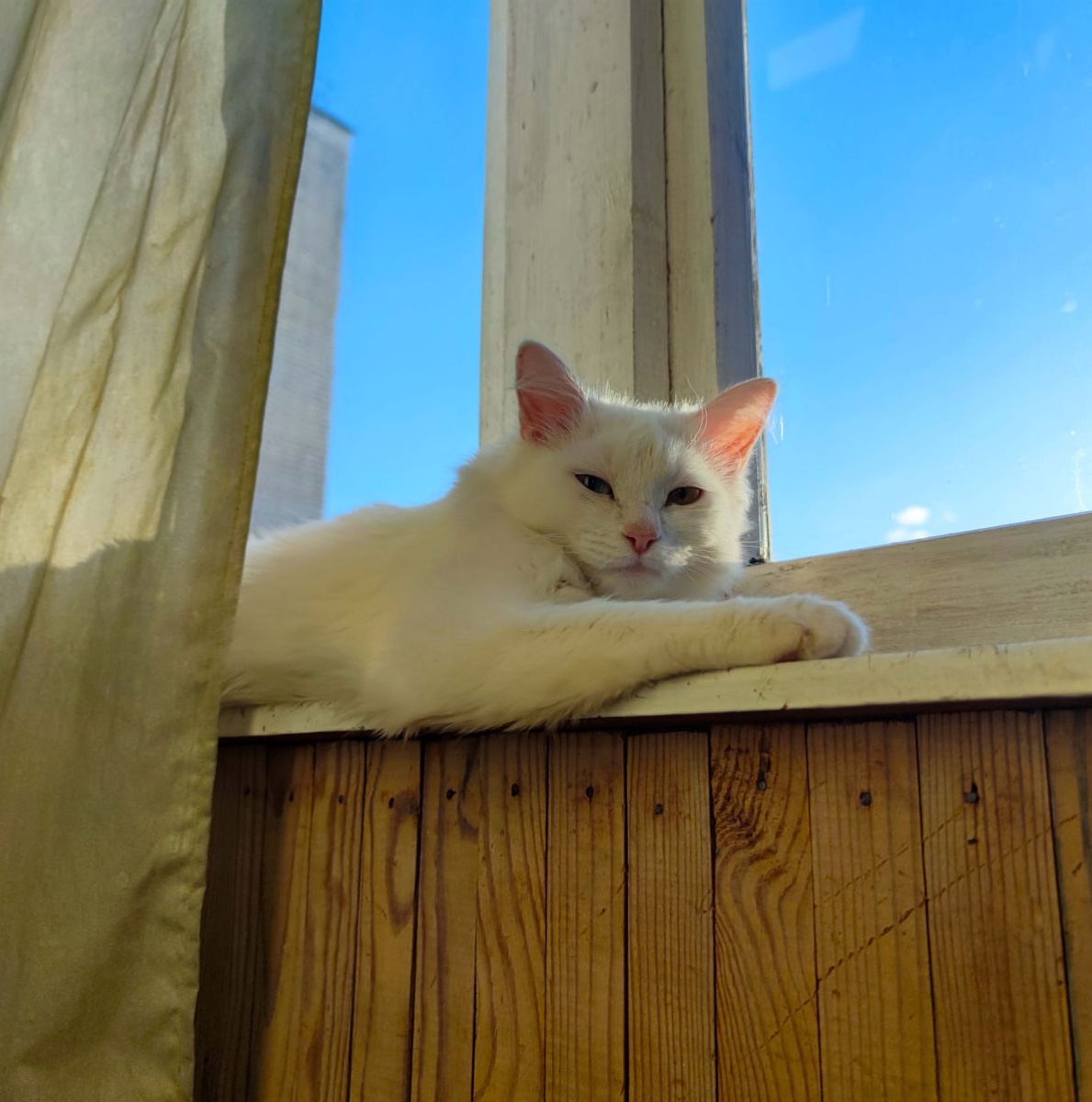 Кошочка уже давно ведет себя мирно: цветы не скидывает, обои не сильно дерет, даже в провода не лезет