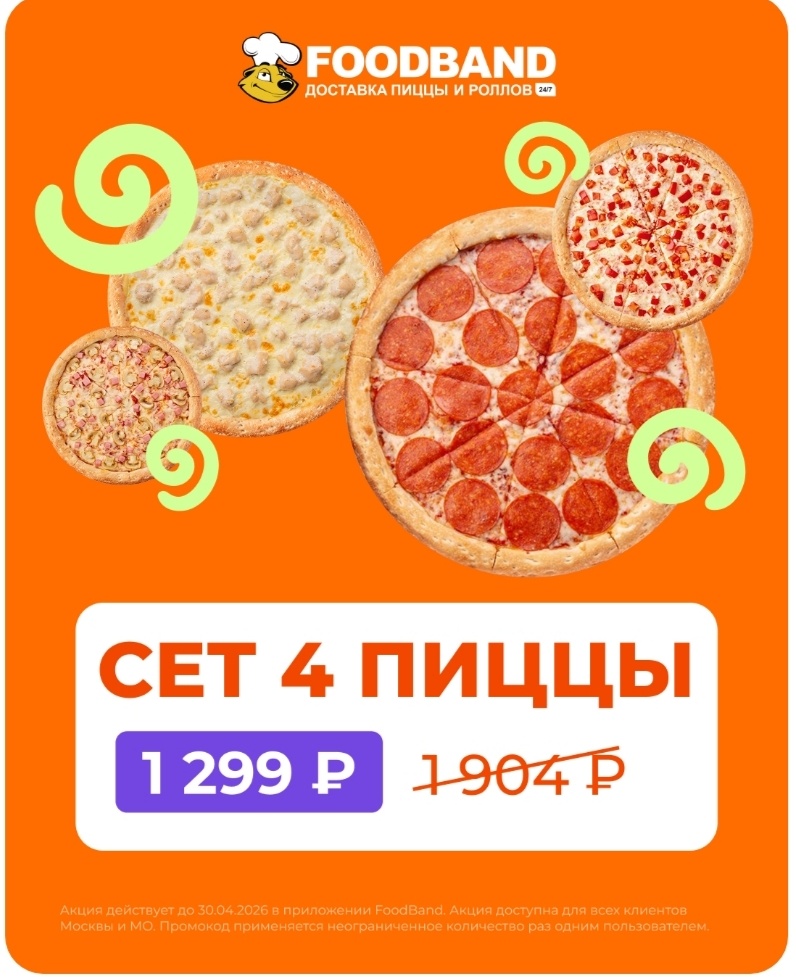 GBL58613 — 4 пиццы за 1299₽ для ВСЕХ!