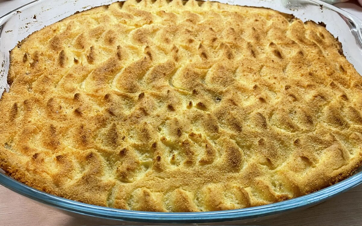 Уверена, что все вы помните вкус картофельной запеканки, которую вы так обожали в детском саду! Сегодня, мои любимые, мы будем её готовить! Да-да, ту самую! Нежную, воздушную и со сметанным соусом — так гораздо вкуснее! 🥰 На форму 40×28 см нам понадобится: Готовим картофель и начинку: Заливаем очищенный картофель кипятком, и пока он варится, занимаемся начинкой. Обжариваем мелко нарезанный лук на сливочном масле до золотистого цвета и отправляем к нему фарш. Постоянно помешивая, обжариваем до готовности с солью и любимыми специями. Можно добавить зубчик измельчённого чесночка для аромата😋 Картофельное облачко: Когда картофель будет готов, сливаем с него всю воду до последней капельки. Добавляем соль, 50–70 гр сливочного маслица и миксером превращаем в пюре. Остужаем примерно до 60 градусов, время от времени перемешивая миксером. Затем добавляем яйца (предварительно перемешанные в отдельной мисочке) и снова взбиваем всё миксером. А теперь начинается волшебство! ✨ Смазываем форму сливо