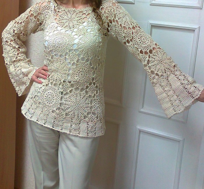 Доброго вечера! Спешу разобрать свою копилку до летнего сезона. Может ещё успеем совершить творческий рывок для создания очередного образа. Под понятием "отдельные элементы" подразумевается, если по-простому, вязание отдельных геометрических фигур в определённом количестве. Затем сборка этих фигур в полотно и сшивание. Вариантов связанных фигур существует множество: квадрат, круг, треугольник, шестиугольник, реже бывает элемент с пятью углами. Часто приходится в качестве заполнения полотна вязать недостающие фигуры по рисунку, своего рода вставки. Проще бывает с квадратами. Здесь модели собирают, сшивают, а по бокам надвязывают, к примеру, сеточкой вставку до нужного размера, подгоняя таким образом под размер. Очень удобно, к слову сказать. Как это сделать, я нашла и покажу. Листайте дальше, в конце статьи такой способ изображён на фотографии. Далее размещаю джемперы для прохладных летних дней. Понравилось что-нибудь вам? Пишите, что бы вы хотели ещё посмотреть на канале.