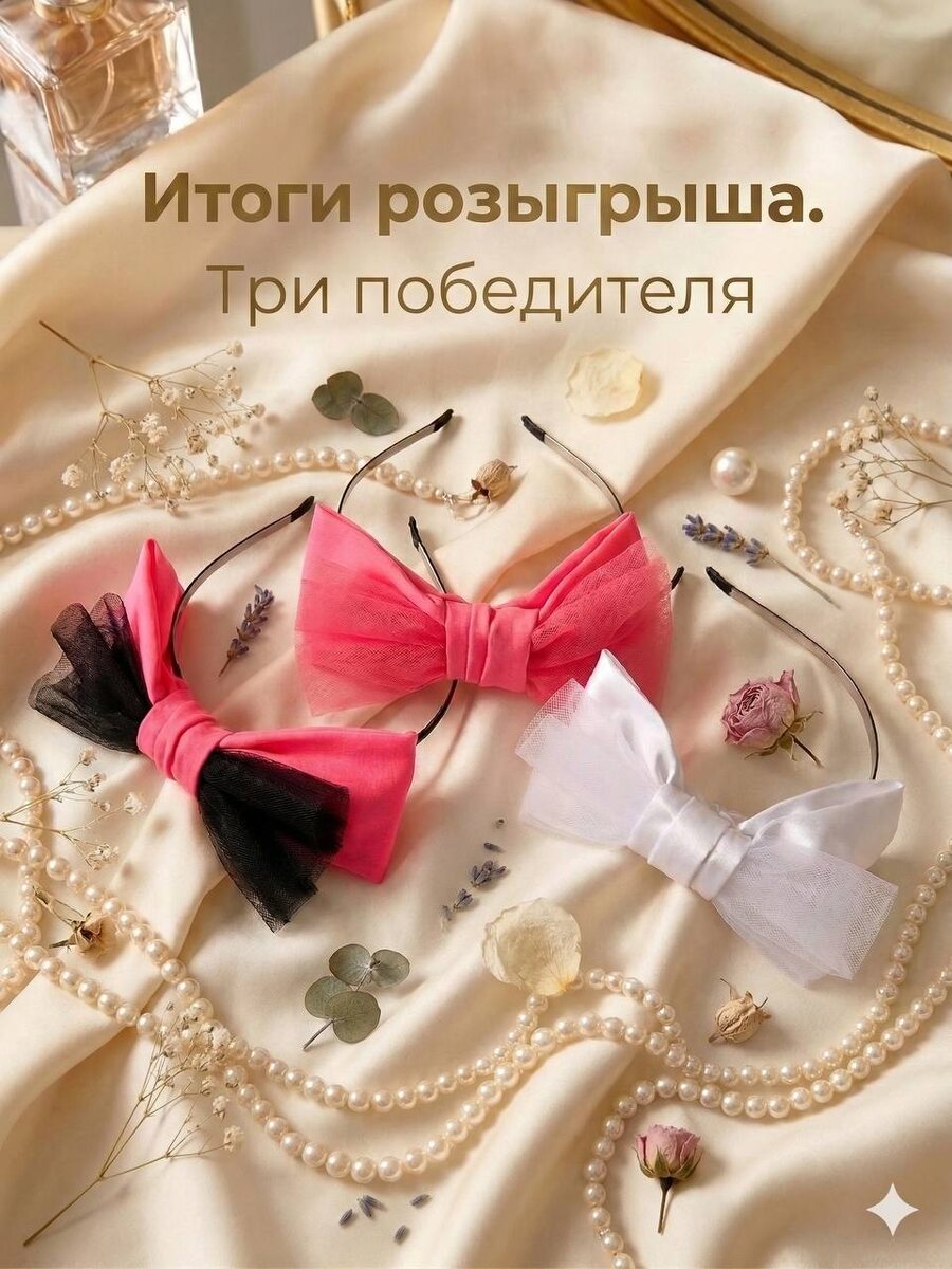 🎀 Мы подвели итоги розыгрыша ободков Niffario 💖 Спасибо всем, кто принял участие — нам было очень приятно видеть ваши комментарии ✨ И победителями становятся: 🥇 @best_day_for 🥈 @Zhanna_Platunova 🥉 Svetlana Поздравляем 🎉 Совсем скоро свяжемся с вами в личные сообщения Спасибо, что вы с нами 💖 Впереди ещё много красивых новинок и розыгрышей 🎀