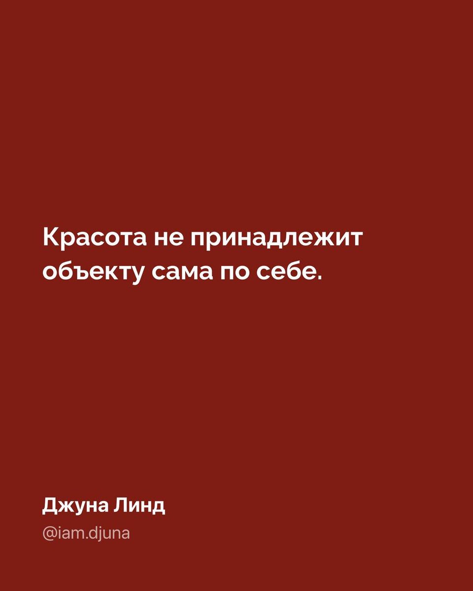 Она возникает в момент встречи, между тем, на кого смотрят, и тем, кто смотрит. Мы привыкли думать, что видим красоту напрямую. Но на самом деле мы её распознаём. Через опыт, насмотренность, культуру и время, в котором живём. Я заметила, что фразу «красота в глазах смотрящего» часто произносят как финальную точку, но вкладывают в нее разные смыслы: Иногда под этим имеют в виду: у каждого свой вкус. Тогда эта фраза звучит как разрешение, что можно видеть красиво то, что не совпадает с чужими стандартами. Иногда это защита.Когда не хочется спорить, не хочется объяснять, не хочется выдерживать чужую оценку. И тогда «в глазах смотрящего» - это способ закрыть разговор. Иногда это почти обесценивание.Как будто за красотой нет ничего, кроме случайного предпочтения, сегодня нравится, завтра нет. Но есть и другой слой, более глубинный. Красота действительно возникает в глазах смотрящего. Но сами эти глаза - фильтр, собраный из: визуальной культуры, опыта, собственных психологических травм