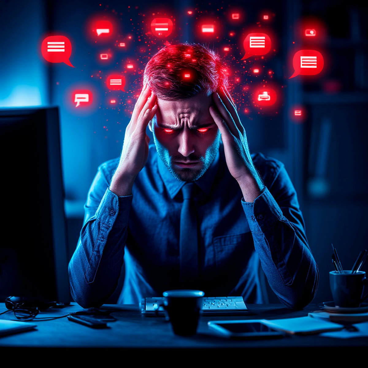 Представьте эту липкую сеть красных точек. Она оплетает ваш рабочий стол. Вы закрываете чат, чтобы вернуться к документу, но в голове туман. Строки сливаются. Структура рухнула. Вы вздыхаете, чувствуя, как внутри сжимается пружина раздражения. Время на часах — 19:00. Взгляд размыт. Вы истощены, голова тяжелая. Но вас пронзает страшное осознание: «За весь день, в этой бессмысленной беготне и миллионе букв, я так и не сделал ничего по-настоящему важного. Завтра всё повторится снова».