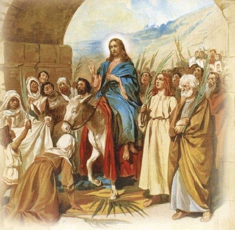 Такими словами восклицает сегодня израильский народ, встречая своего Творца. Христос, воскресивший праведного Лазаря, четыре дня мёртвым бывшего, входит в славный град Иерусалим. Он, Всемогущий Бог, умаляет своё величие и едет верхом не на великолепном коне. Он просит привести ему ослика жеребёнка и на нём въезжает в город.