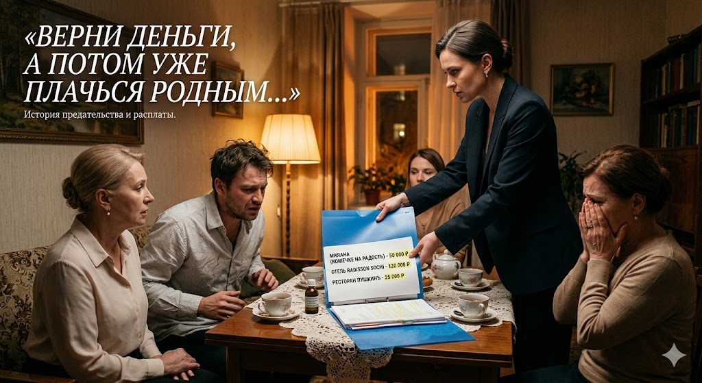 — А теперь слушай меня внимательно, Игорь, — голос Анны был тверже стали. — Я подаю в суд. У меня есть расписки на часть суммы, а переводы с моей карты на твою мы оформим как неосновательное обогащение. Мои юристы уже готовят документы. Ты вернешь мне всё до копейки. Даже если тебе придется продать свою машину и почку. А пока... — Анна усмехнулась, — можешь плакаться родным дальше. Только теперь они знают, почему я «жмот».