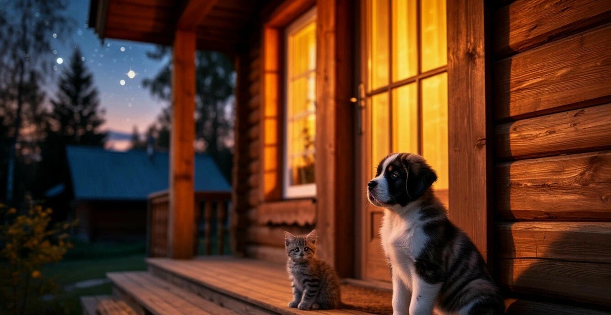 В уютном домике, где всегда пахло пирогами и по полу играли солнечные зайчики, жили серенькая кошечка Фитти и маленький щенок сенбернара Герри.