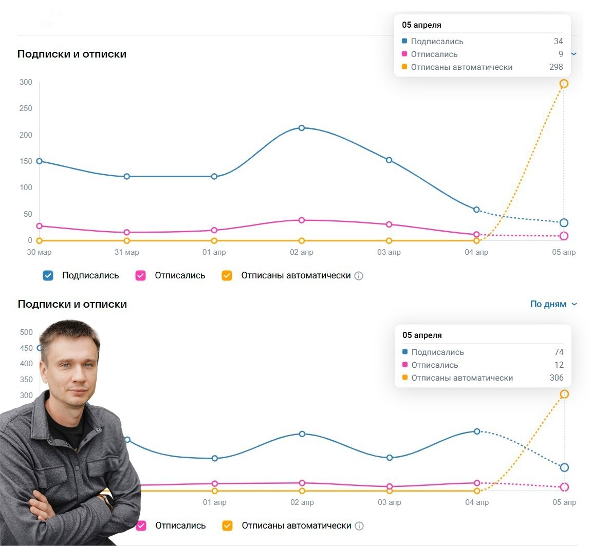 📈 Так вот это и коснулось моих двух проектов, в статистике это выглядит вот так: "Отписаны автоматически".