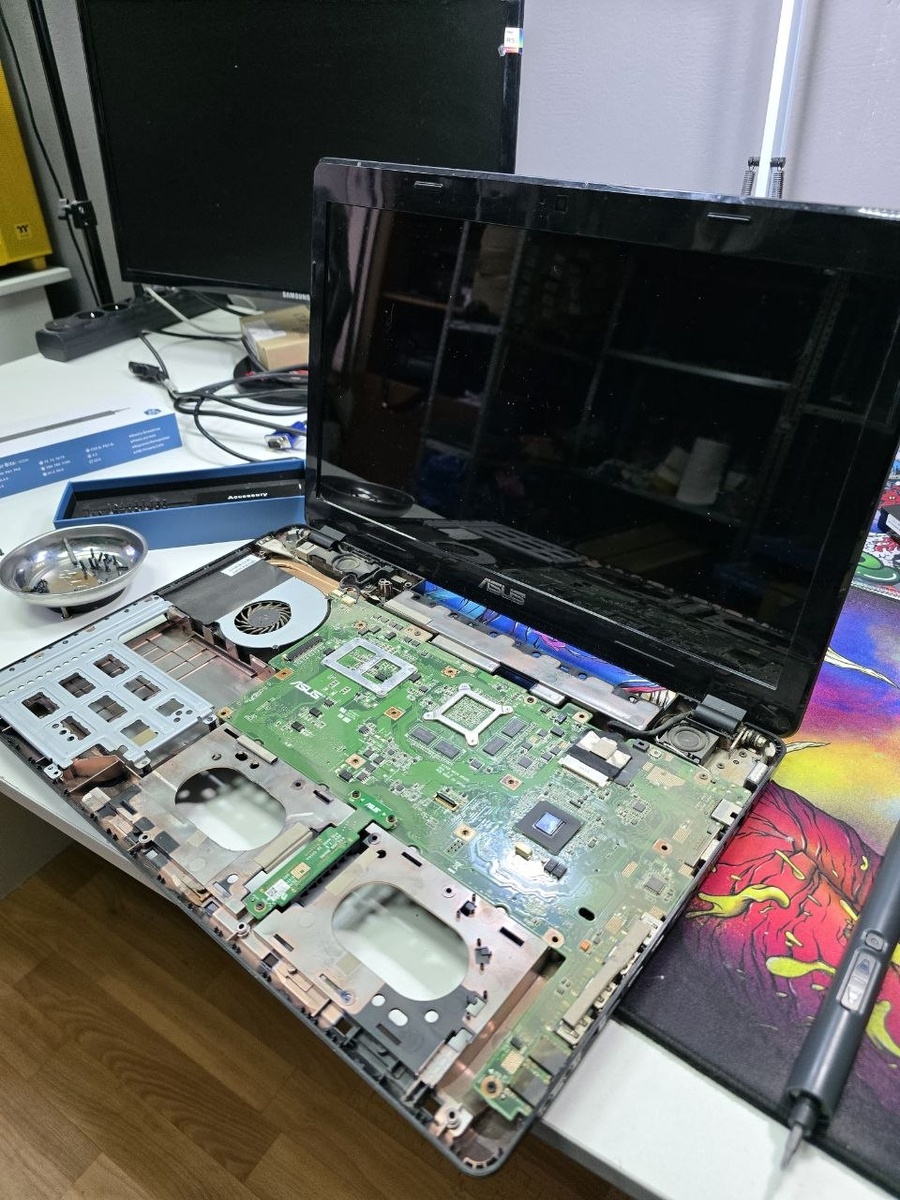 Чистил сегодня старый ASUS. Ему уже лет 15, и его чистят впервые. Я уже отвык от таких старичков: чтобы его разобрать, приходится хорошенько поработать 😁. Второй сегодня — системный блок: стандартная чистка от пыли и замена термопасты везде, где можно ☝🏻.