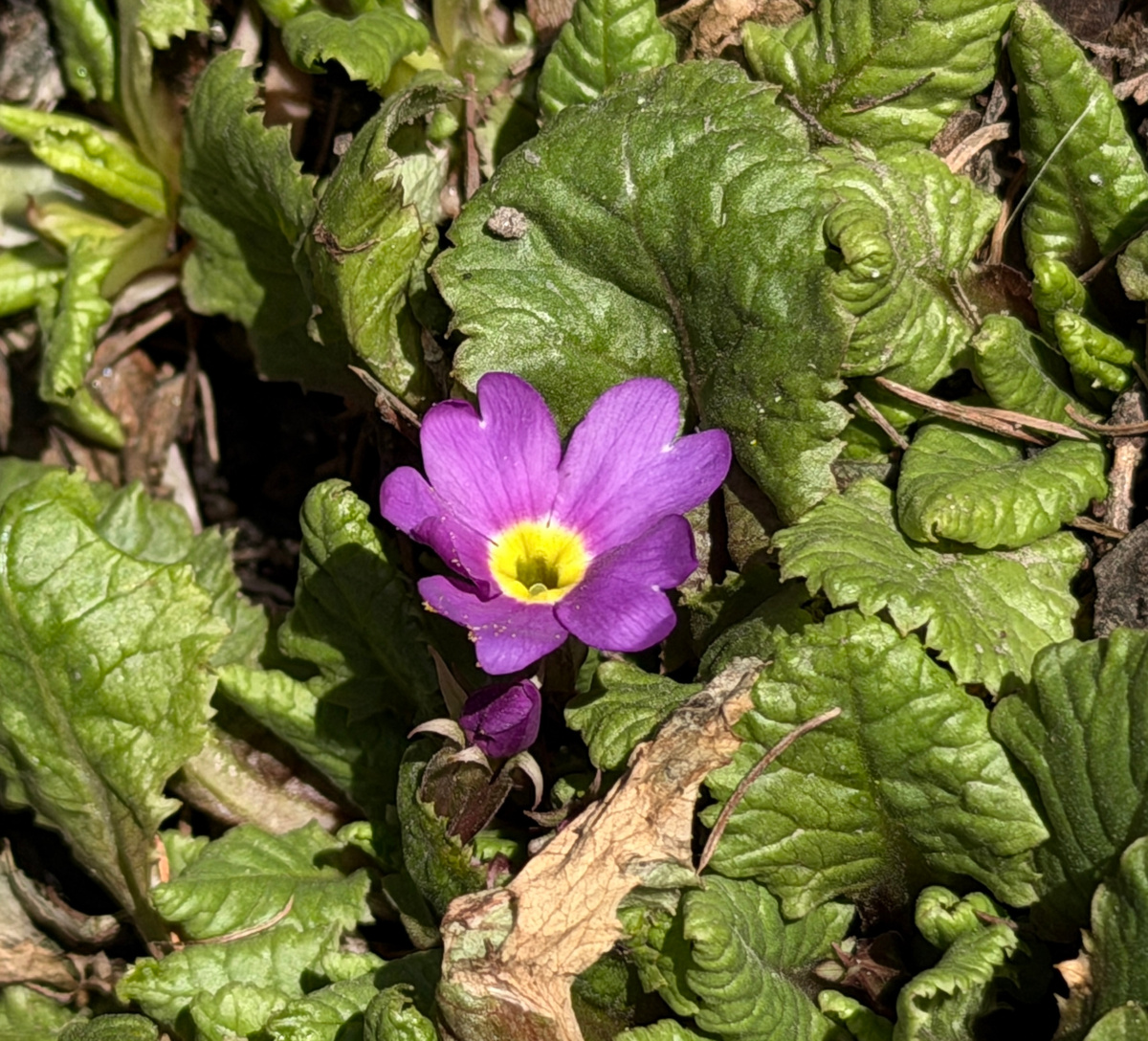 Она у меня случайная-заносная, когда-то появилась вдруг под одной из гортензий. Сейчас увидеть это обещание вдвойне радостно. Потому что в прошлом году всё-таки нашел-откопал её крохотную луковку и перенес на другое место, специальное для млеколуковичных первоцветных.