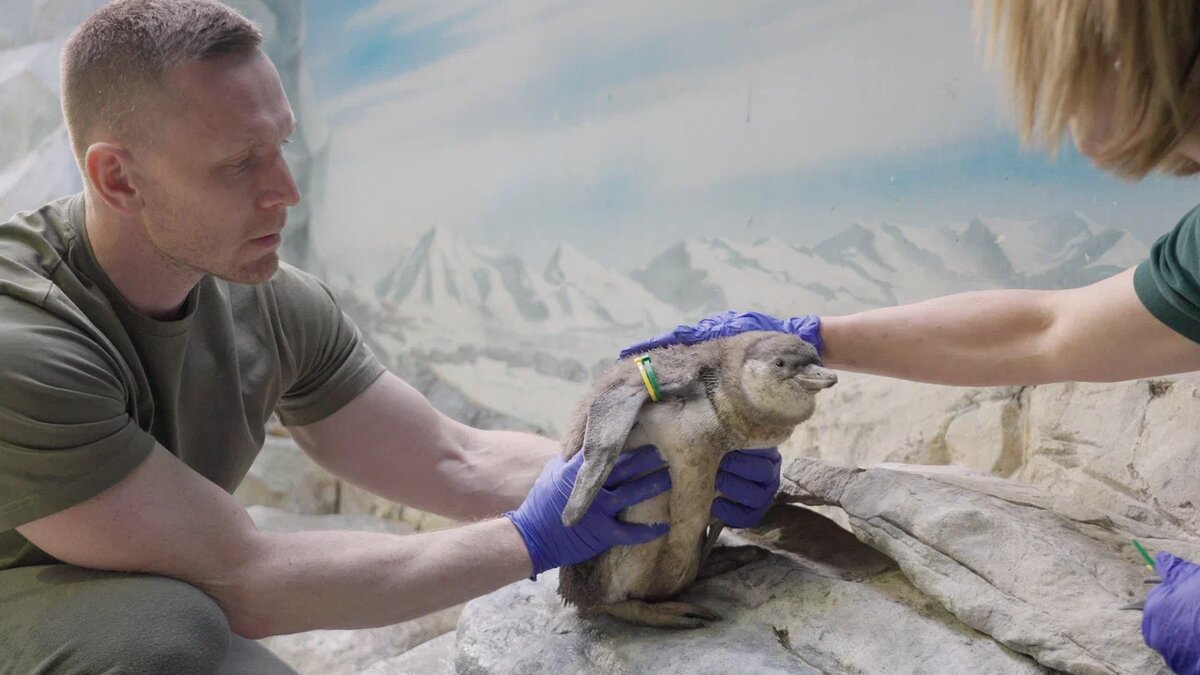 Пингвины Гумбольдта - популяция, которая когда-то, вероятнее всего в ледниковый период, покинула берега Антарктиды и поселилась на тихоокеанском побережье Чили и Перу. Это некрупные пингвины. Их можно встретить почти до Эквадора, - там, куда достает холодное течение Гумбольдта, но обширный ареал только добавляет им проблем с выживаемостью. Ледники тают, объем холодного течения уменьшается, и пингвинам все труднее находить подходящие места для гнездования и охоты. В результате их становится все меньше. В Московском зоопарке живет и успешно размножается группа этих пингвинов, среди них сформировались несколько пар, и в конце прошлого года они отложили яйца. Высиживание длится 38-40 дней, и в конце января птенцы начали вылупляться. Примерно до июня птенцы живут в норах, а родители по очереди выходят на кормление и кормят малышей. В этот период зоологи не вмешиваются в естественный процесс выращивания и воспитания птенцов. Самым старшим из пингвинят этого сезона уже исполнилось два месяца,