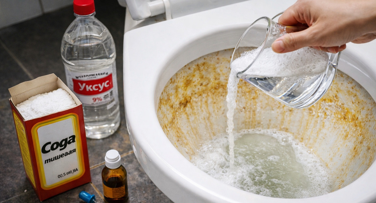 Желтый налет. Белые разводы. Известковая корка, которая не оттирается даже с помощью «Крота» и щетки. Знакомая картина? Сантехника портит настроение. Гости стесняются заходить в туалет. Хозяйка тратит часы на бесполезное трение. Оказывается, есть способ, который требует одного движения вечером. Залил — и забыл. Утром налет исчез сам. Без щетки. Без химии. Без надрыва спины.