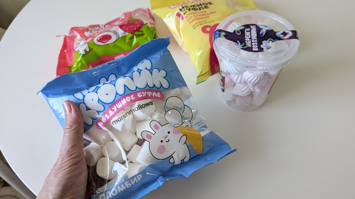 А первым делом нас нужно купить в любом магазине маршмеллоу (я покупала в фикс прайс всего за 60 рублей пакет на 85 грамм - такого объема предостаточно для украшения четырех куличей)