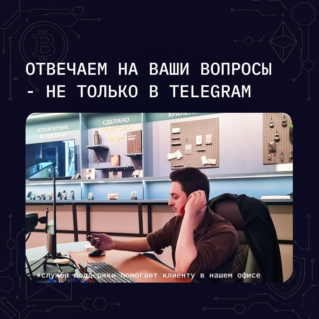 По телефону, в чате и оффлайн. «Какой кошелёк выбрать под мои задачи?» «Как правильно настроить?» «Что делать, если баланс не отображается?» Эти и многие другие вопросы регулярно приходят в нашу поддержку — и мы помогаем разобраться с каждым. Мы не просто продаём устройства. Купить кошелёк и положить в стол — это ещё не безопасность. Важно, чтобы устройство подходило вам, и вы понимали, как им правильно пользоваться. ✅ Поэтому и консультируем — чтобы защита была реальной, а не номинальной. Кстати, если предпочитаете разобраться вживую — приезжайте. 📍 У нас есть офис-шоурум в Москве (адрес на сайте). Фото на иллюстрации — как раз оттуда. Покажем устройства, поможем выбрать и разобраться с настройкой 🤝 Сайт | Техподдержка | Обменник