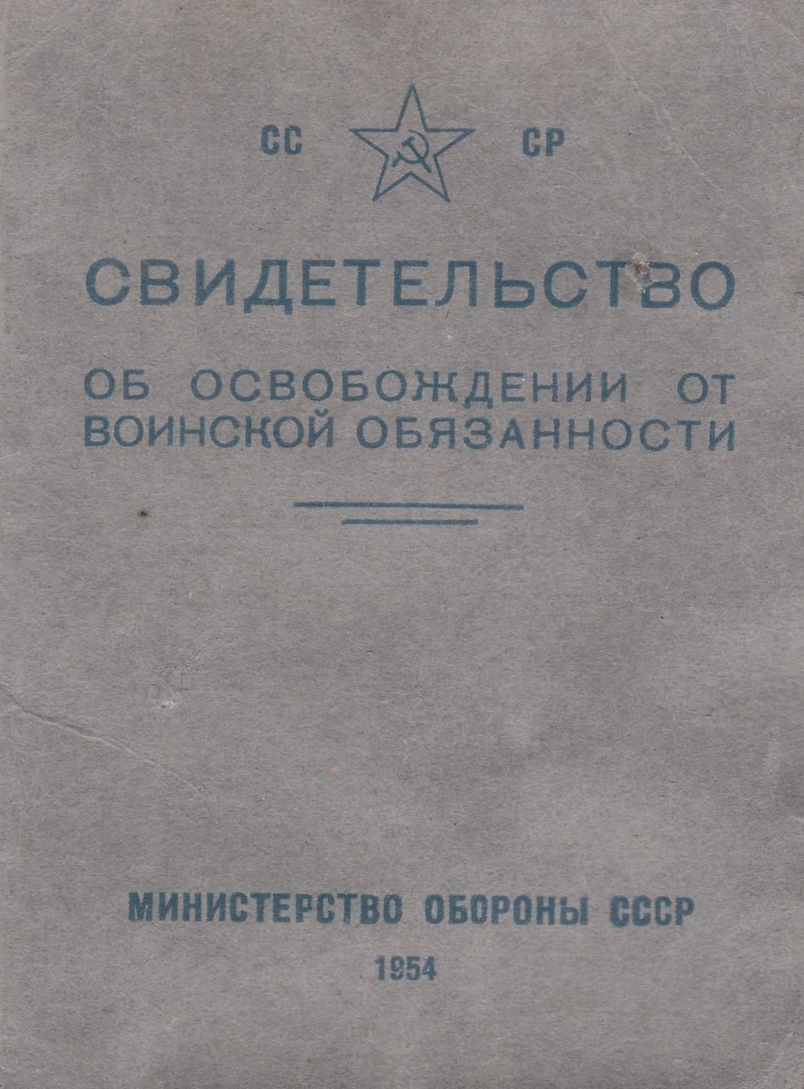 Свидетельство об осовобождении от воинской обязанности на Тихонова И