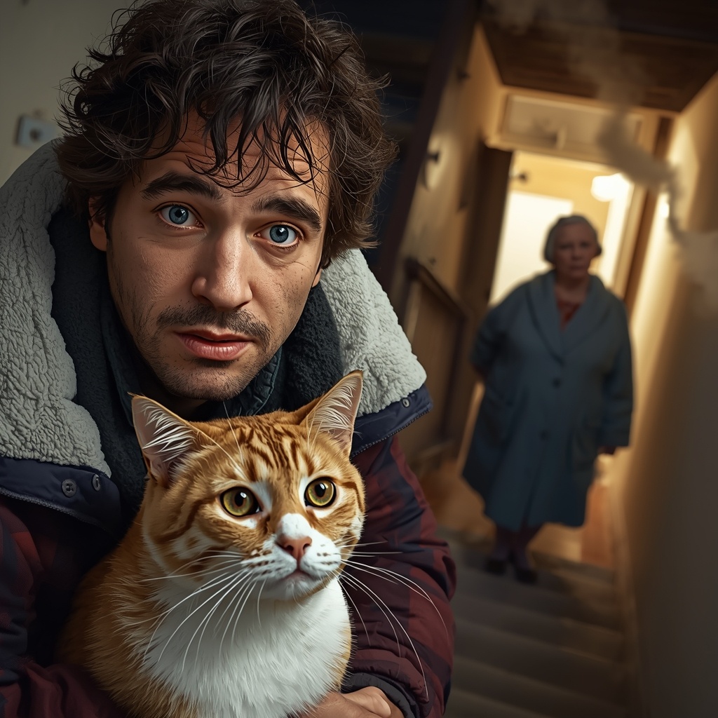 И тут я сам не знаю почему, но что-то меня толкнуло. Может, интонация кота. Может, то, как он смотрел на дверь — не просто требовательно, а как-то тревожно, что ли. Я накинул куртку прямо на пижаму, сунул ноги в ботинки и вышел на лестничную площадку.