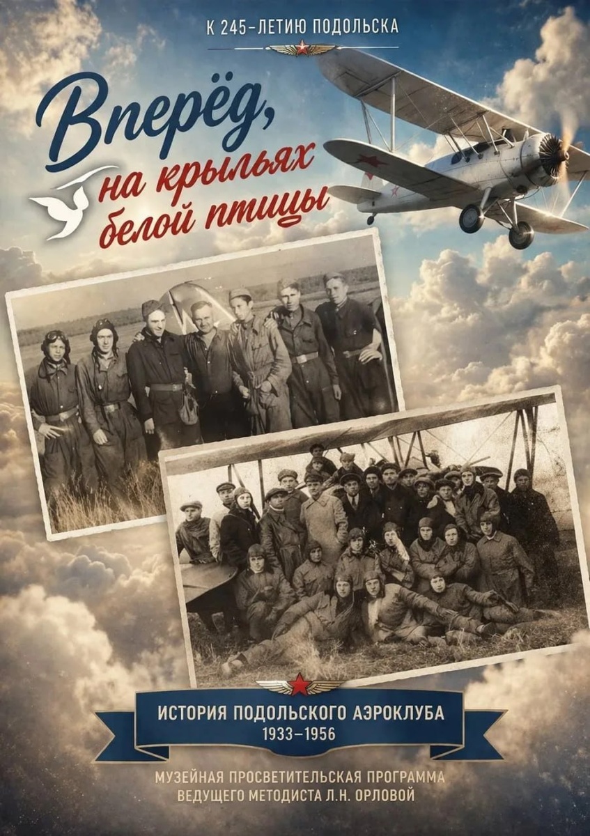 ✨ Музейная просветительская программа «Вперёд, на крыльях белой птицы» ✈️Встреча посвящена истории Подольского аэроклуба (1933–1956 гг.) — важного этапа развития авиации города. Участники узнают об уникальных документах, архивах и экспонатах музея, раскрывающих судьбы людей, увлечённых небом. ✈️Ведущая Л.Н. Орлова, заинтересует любителей истории, авиации и родного края. 🚫 Возраст: 12+ 📆 10.04.2026 🕒 14:00 🏢 Музей-заповедник «Подолье» 📍 г. Подольск, проспект Ленина, 43 💰 Вход свободный❗️ ⭐Поддержать канал голосом 🍰Где поесть в Подольске ✅ Мероприятия Подольск https://dzen.ru/id/66ed500f7b5671493eca3fd6 https://vk.ru/podolsk_events http://dzen.ru/podolsk_events
