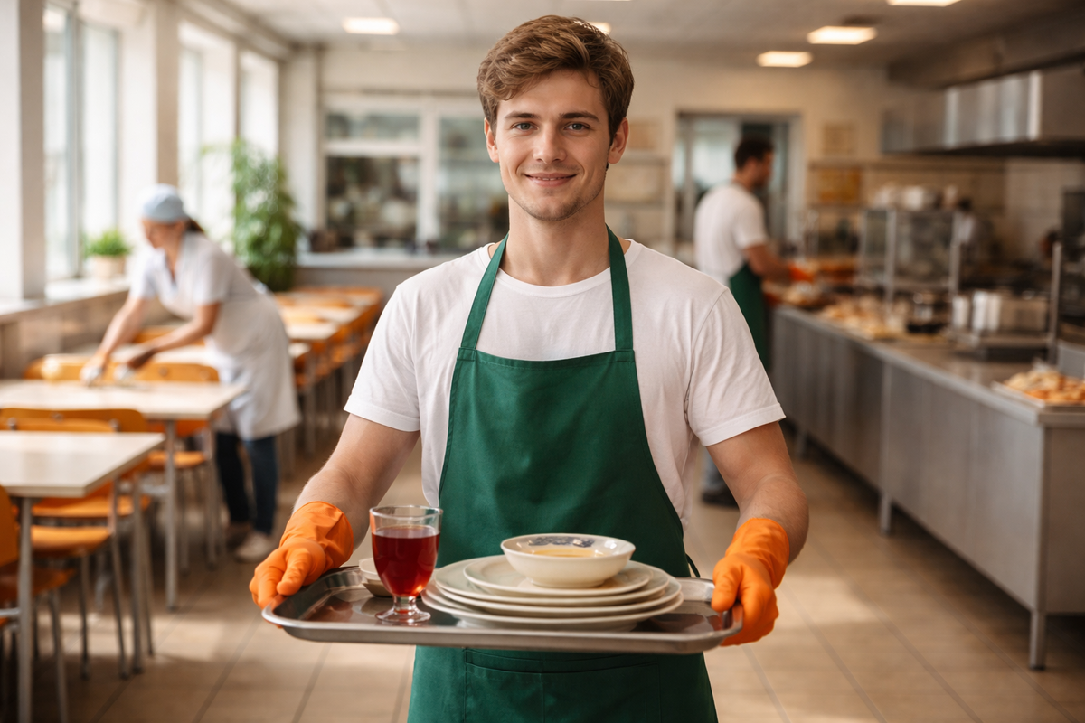 Утро тянулось, как всегда. Поварихи ставили компот, чайник гудел, за стеной хлопала дверь спортзала, а в коридоре уже раздавались ранние шаги. Данил молча протирал столы, носил ложки и ни разу не попросил послабления. Только один раз остановился у котлет, когда Тамара перекладывала их из противня в гастроёмкость, и быстро отвёл глаза.