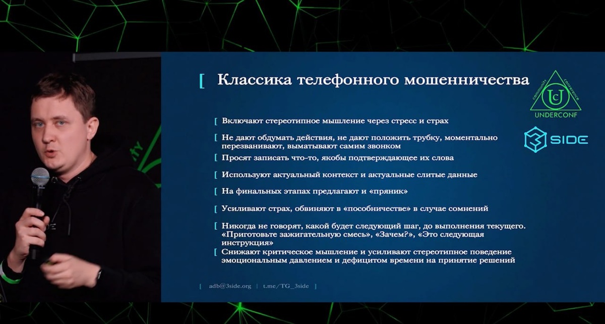 Я уже писал про то, что у нас в голове работает две системы мышления, которые описал Канеман в книге "Думай медленно, решай быстро". И именно первой "автоматической" системой и пользуются мошенники. Главное: они не убеждают — они отключают мышление и включают автопилот. Они даже пытаются выловить людей, которые находятся в этом "автопилоте" и начинают их направлять дальше, вплоть до того, что они покупают зажигательную смесь и отправляют данные. 🧠 90% наших действий — автоматические В этом режиме критического мышления нет. Мошенник ловит людей именно в этом состоянии и ведёт дальше. До покупки зажигательной смеси. Без шуток. ⚡️ Как отключают логику Через стресс: «у вас украли деньги», «срочно». Или просто — много информации и давления. Мозг не справляется и переключается на автоматику. 🎯 Принцип последовательности — главный инструмент Сначала «запишите список документов». Потом «назовите код из СМС». Потом «переведите деньги». Каждый шаг выглядит безопасным. Остановиться сложно