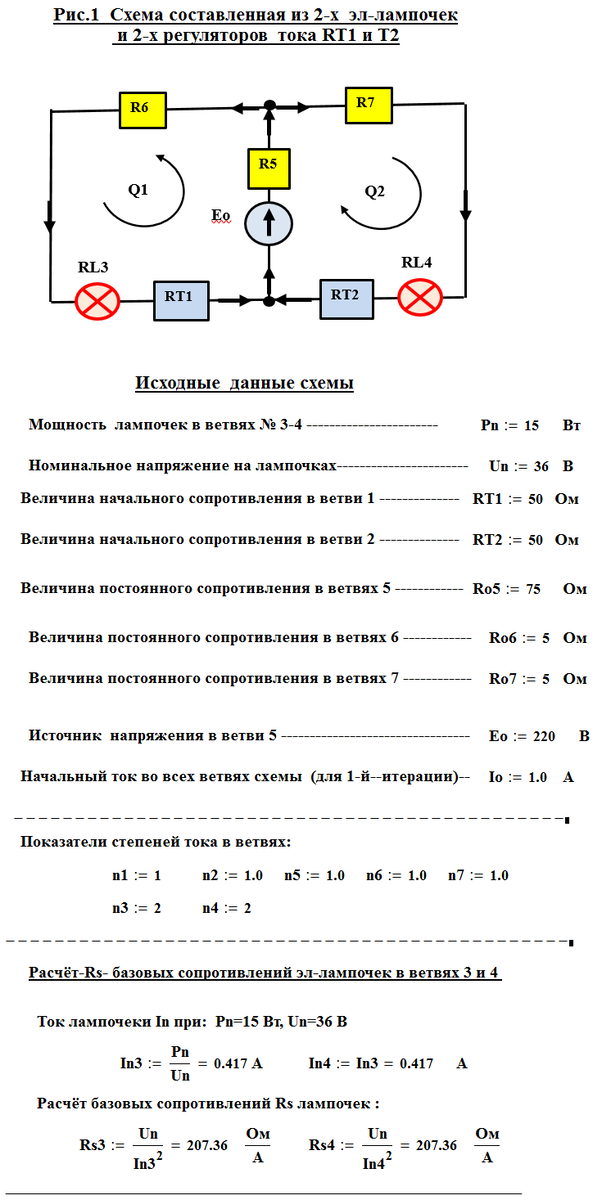 Дугинов Л.А. l.duginov@mail.ru Ключевые слова: методы расчёта, постоянный ток, электрические схемы, лампы накаливания, нелинейные сопротивления, цифровые регуляторы тока и напряжения ВВЕДЕНИЕ. Метод решения нелинейных электрических схем постоянного тока, основанный на переводе нелинейных сопротивлений в разряд линейных очень естественно позволяет включать цифровые регуляторы тока и напряжения в данные схемы, при этом не нарушая проведения итерационного процесса расчёта. В данной статье как раз используется такой метод решения нелинейных электрических схем постоянного тока. Читателю статьи метод решения может показаться новым, хотя аналогичный метод у наших "соседей гидравликов" он применяется уже более 50-ти лет. Хотя у нас с ними науки разные, но схемы гидравлические и нелинейные электрические описываются системами нелинейных уравнений, которые для решения необходимо переводить в систему линейных уравнений. Краткое описание этого метода (для гидравликов и электриков) приводится ниже